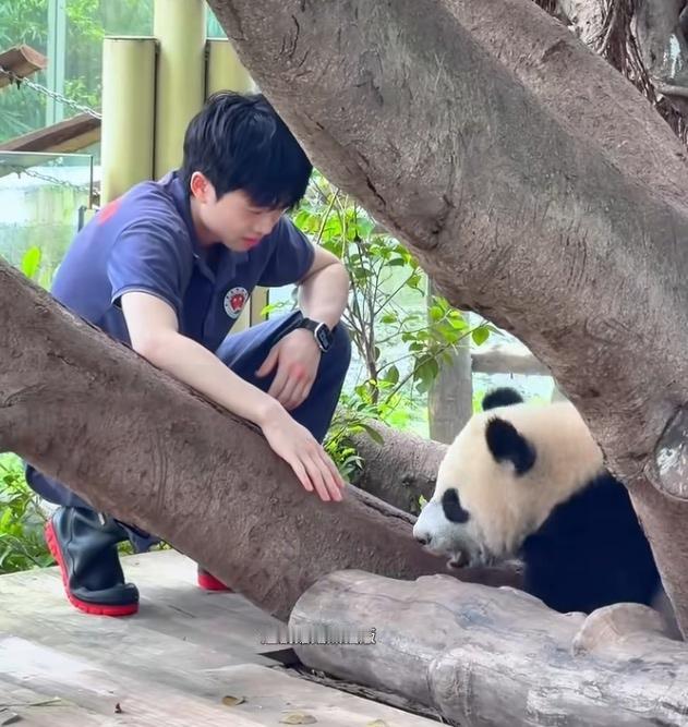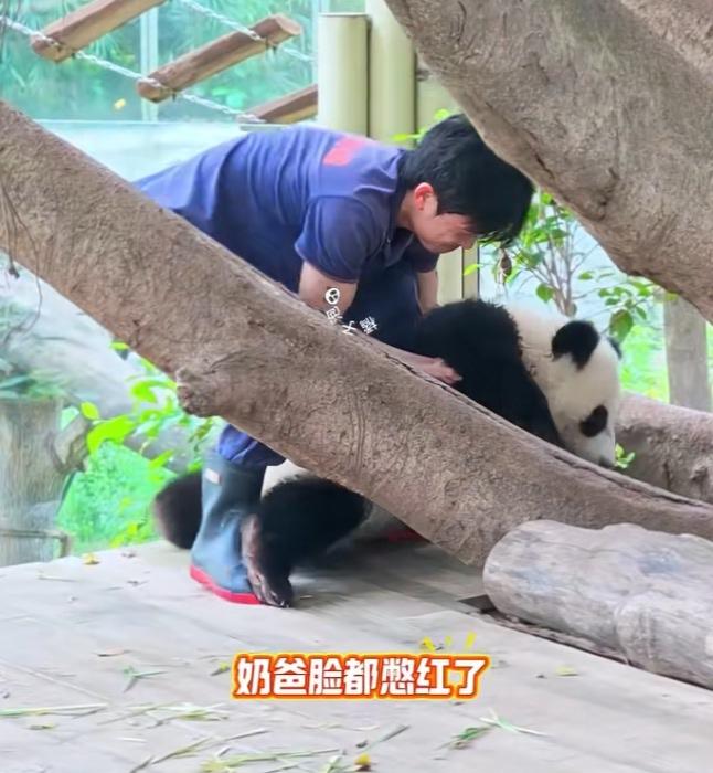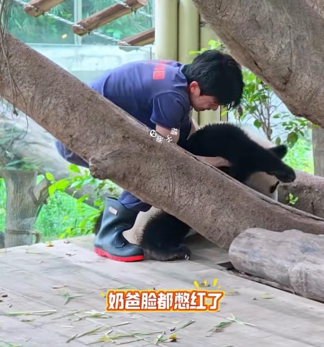 小月亮的勾腿功、抓地神功和犟牛功实属厉害,奶爸已经在木架上从后面把它抱住了,心里暗自高兴可以收它下班了,但是,不料小月亮使出了它的3种功夫:勾腿功、抓地神功和犟牛功,随便苗苗奶爸怎么样使出浑身解数,脸都憋得通红,也没有办法把小月亮从木架上抱起来,最后只有放弃了!他好累,蹲在小月亮旁边休息,小月亮见苗苗奶爸不抱它了,心里高兴极了,不用下班了,于是它也躺靠在苗苗奶爸面前的一根横木上休息,经过这么一折腾,它也很累!但它还不忘把它的小手搭在苗苗奶爸手上安抚奶爸,让奶爸好好休息![笑哭]苗苗奶爸看着小月亮,又好气又好笑,心想我累成这样还不是拜你所赐,看在你主动安慰我的份上,我就奖励你,暂时不让你下班了![大笑]小月亮 熊猫小月亮 熊猫 大熊猫 国宝 重庆动物园 (cr:@橘子泡🐼)