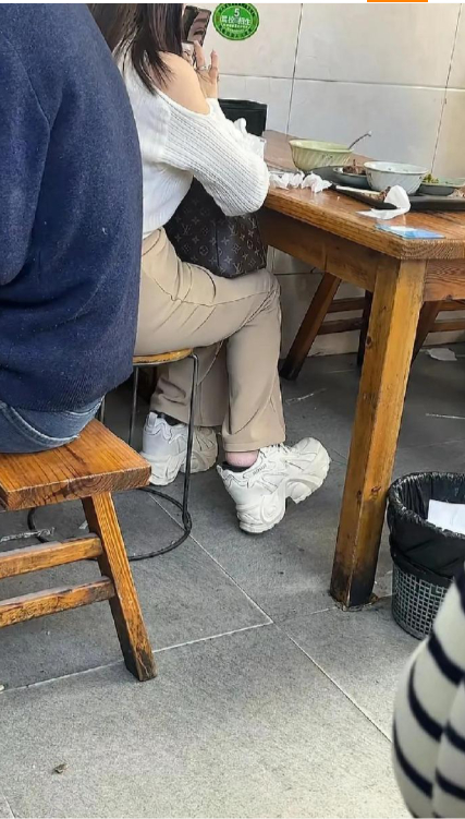 先看图:小女生的脚已足够纤细,但看起来高跟鞋的鞋口还是明显小于她的小脚丫的!