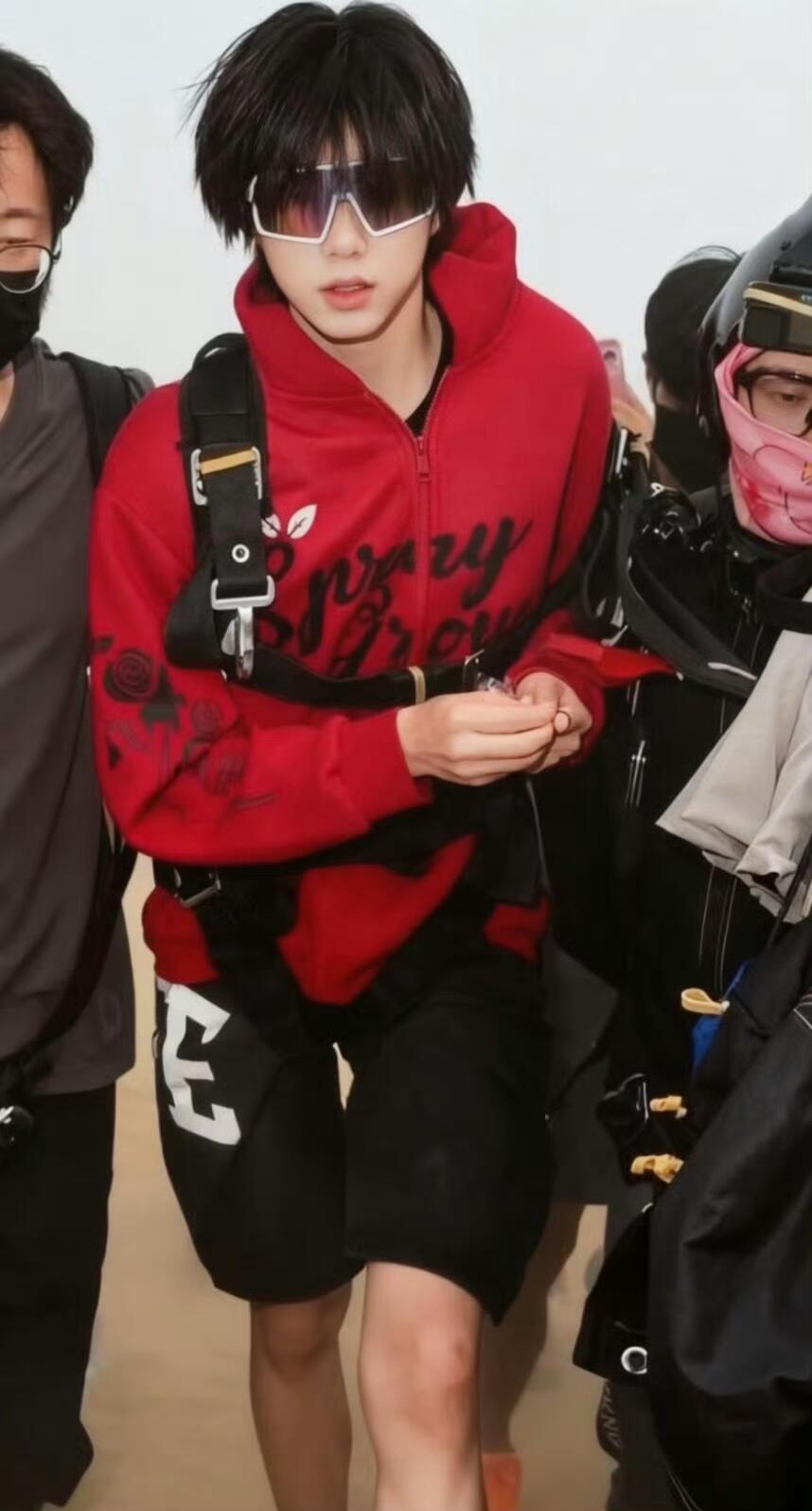 陈奕恒天选无限流男主今日份的陈奕恒,是从漫画里走出来的跳伞少年吧!红卫衣+反光墨