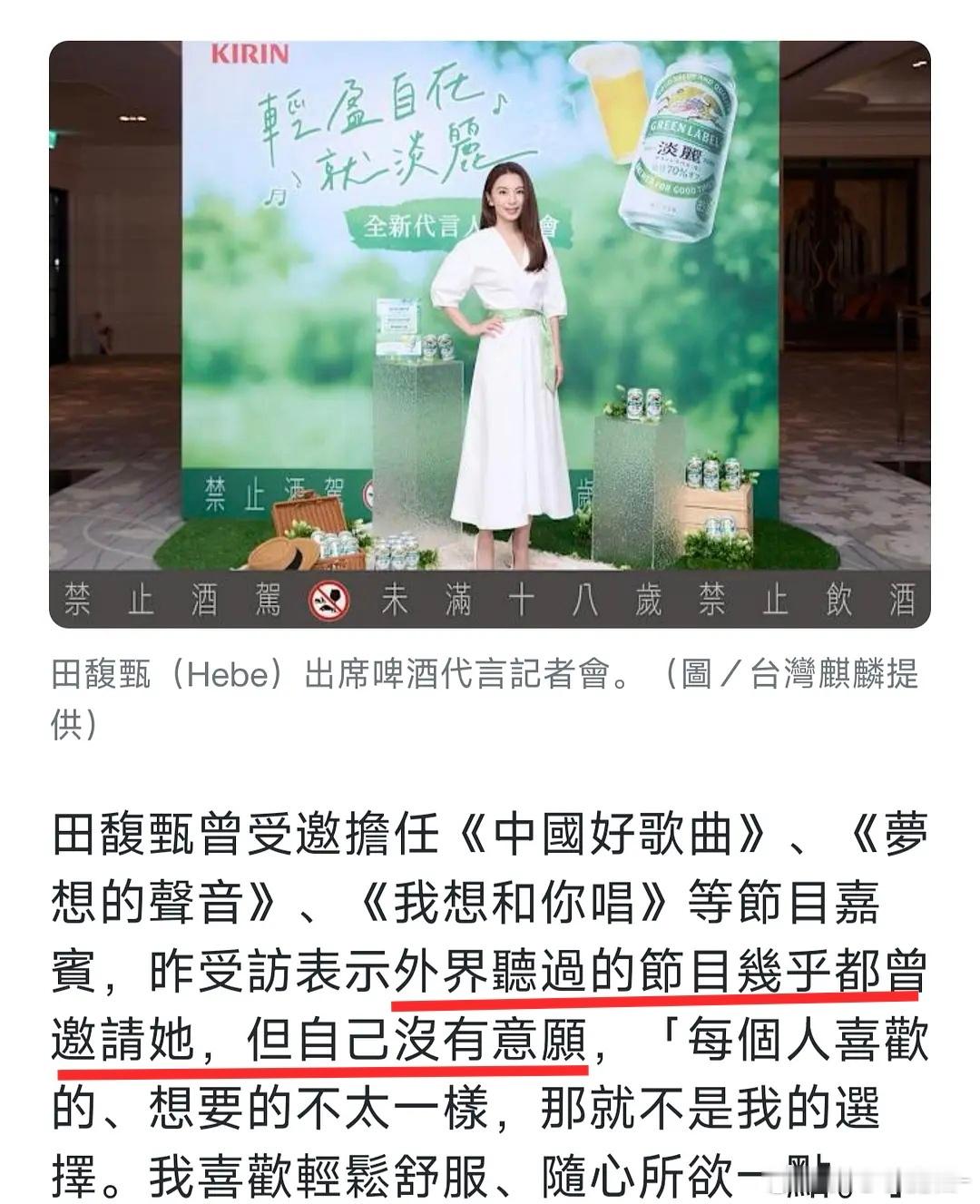 田馥甄说几乎所有的节目都邀请过她,她不稀罕去,包括浪姐。我们的歌花一亿请她,私人
