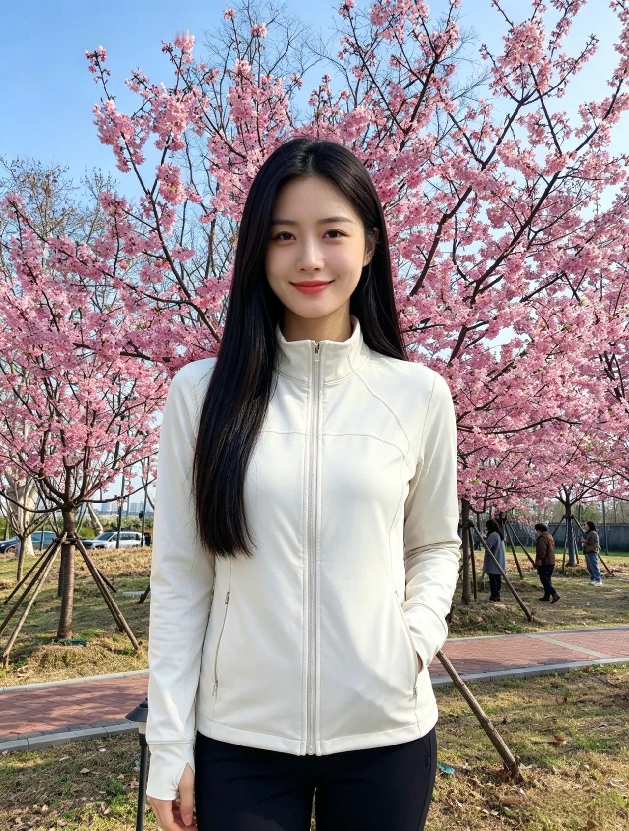 一身纯白的松弛 把喧嚣都轻轻揉碎 黑长发垂落的温柔 是岁月最干净的明媚 眉眼浅笑