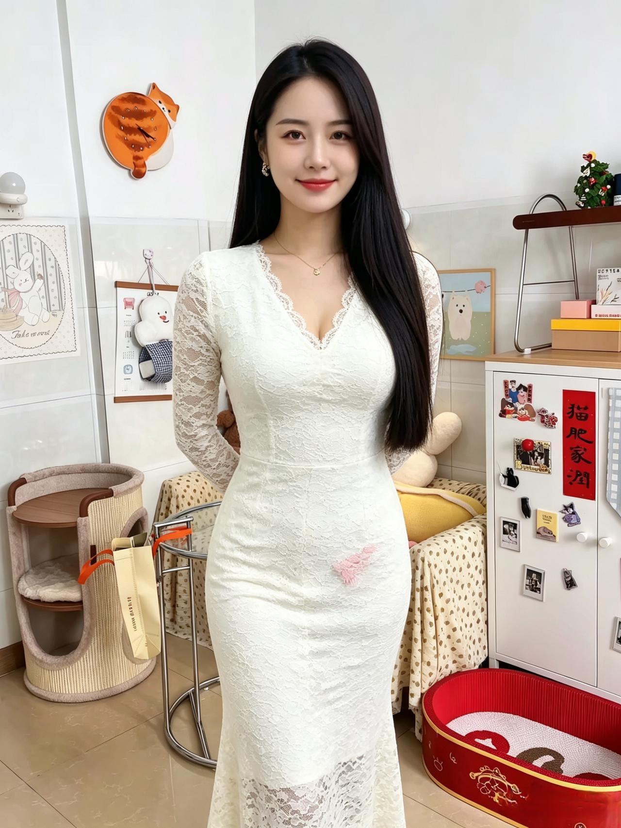 蕾丝如诗,轻覆肌肤的柔美纹理。白纱曳地,似月光织就的梦之羽衣。长发倾泻,