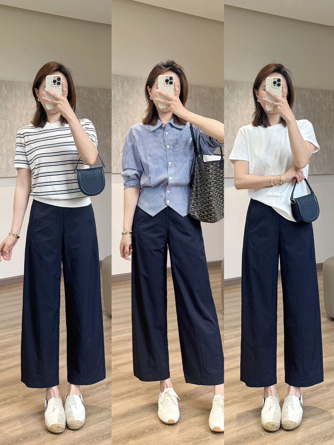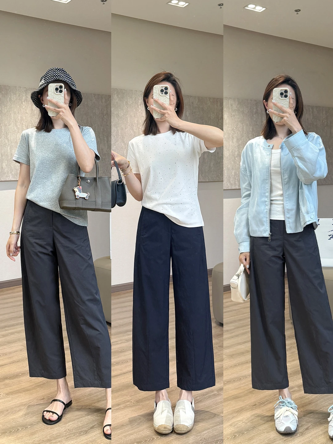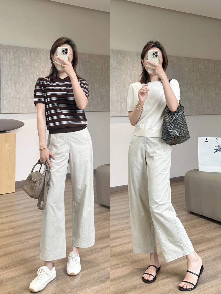 158小个子穿搭 梨形身材穿搭 夏季穿搭 九分裤 奶奶裤 休闲裤穿搭 简约穿搭 气质穿搭 抗皱面料 小个子穿搭