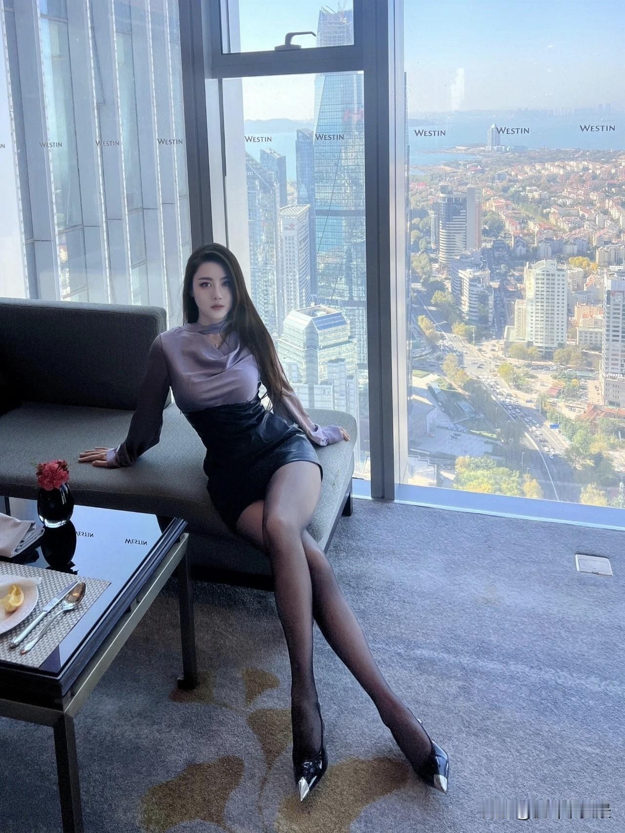 枫叶🍁|“紫色丝绸上衣+高腰半裙+薄丝+小高跟”,高级又显气质,紫色确实更有韵