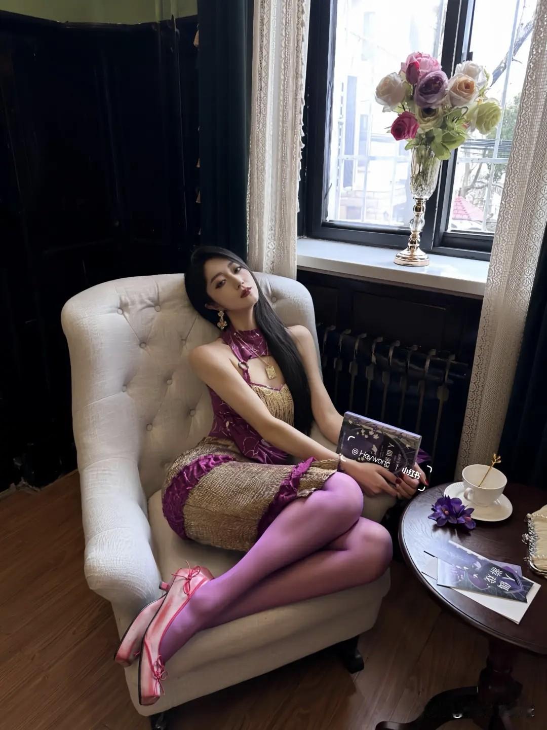枫叶🍁|紫丝旧梦 鎏金紫韵撞色,丝袜裹着复古庄园的风情请问什么样的女人算得上