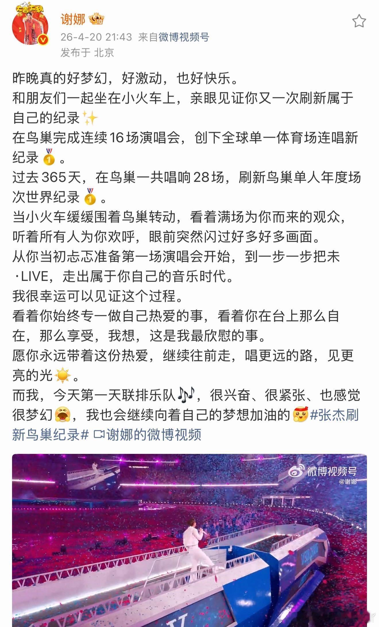 谢娜今天第一天联排乐队谢娜祝贺张杰刷新鸟巢纪录这么多年两人始终相互扶持,张杰在鸟