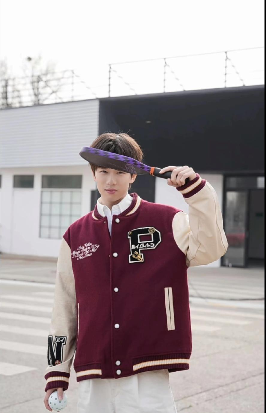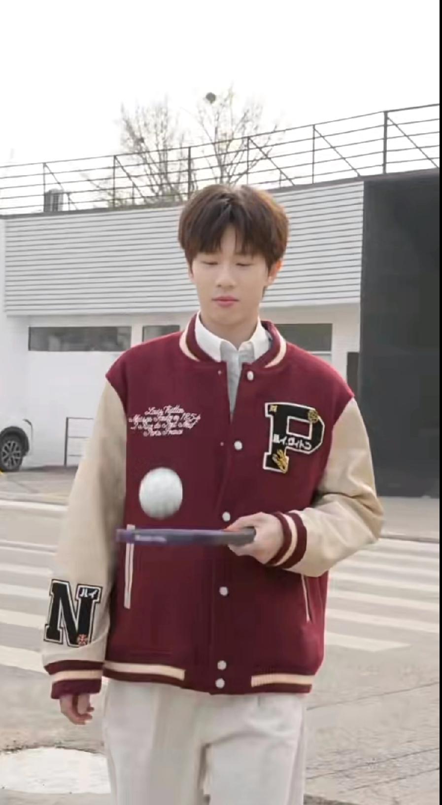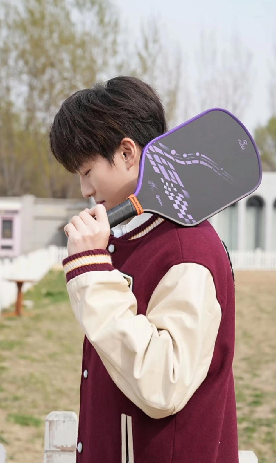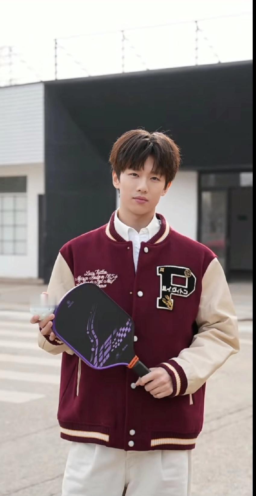 酒红色棒球服衬得少年感拉满,拿着匹克球拍的样子,既有国乒选手的利落劲儿,又带着点清爽学长的温柔感。