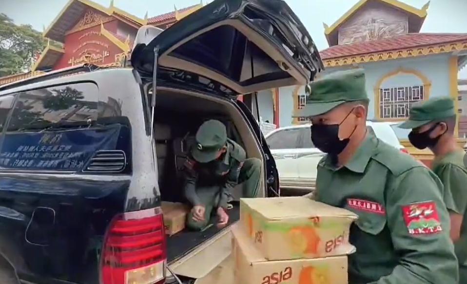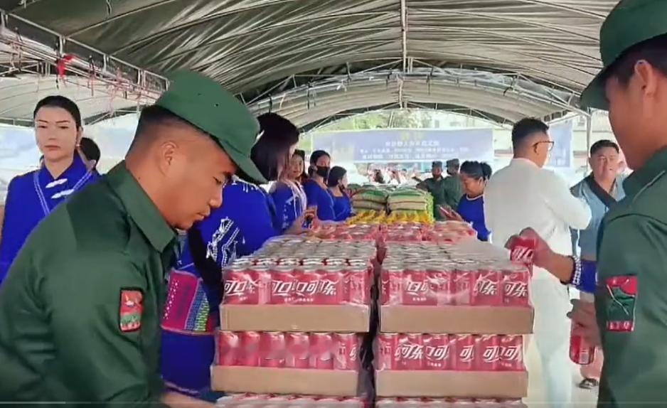 佤邦鲍艾康率军捐献大米和饮料助阵!