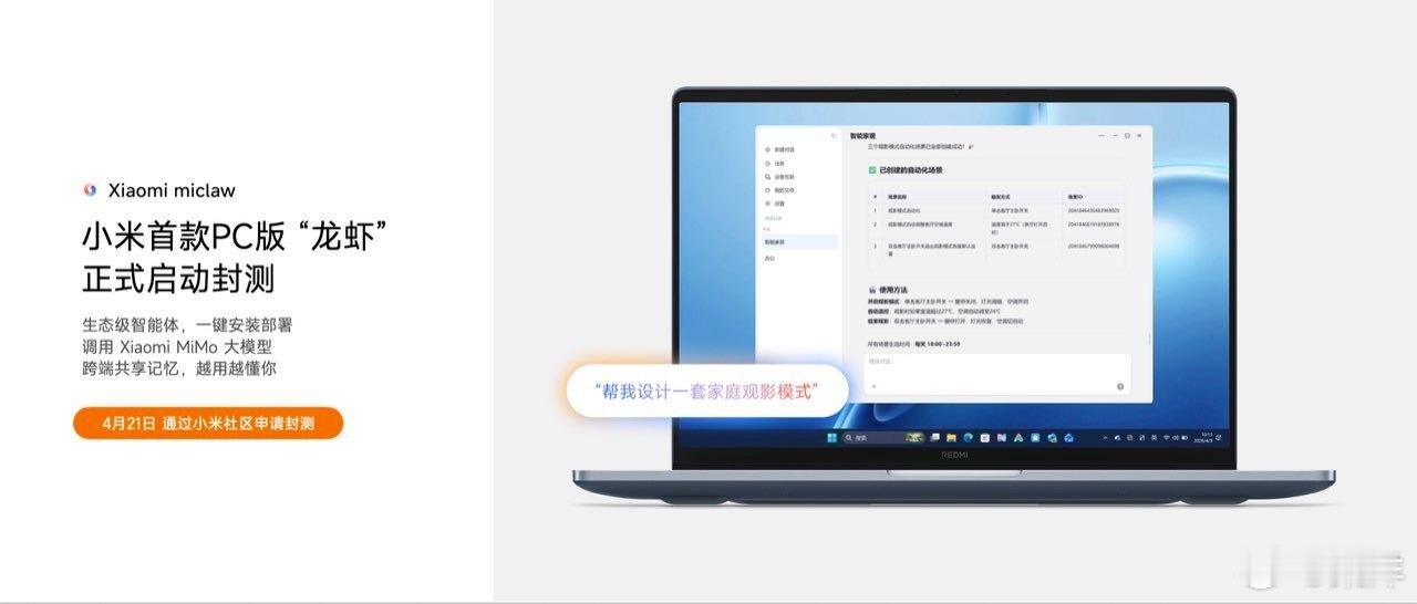 小米龙虾只用一个月,就从手机端快速拓展到平板、电脑、音箱,率先打通人车家完整生态,真正的全生态龙虾,还得看小米。作为行业唯一拥有完整人车家生态的品牌,小米做这件事本身就最有优势。其他友商还在不停炒概念、画大饼,小米已经把龙虾全家桶实打实推进封测落地,不玩虚的营销,用实际进度说话。而且小米龙虾现在还支持 MacBook,持续兼容苹果生态,格局真的很大。手机、汽车早已适配苹果,连 AI 龙虾都做到苹果设备兼容,刚好补上苹果国行 AI 迟迟不上线的短板。小米坚持基座大模型和 AI 应用同步发力,龙虾体验很强,背后 MiMo 大模型实力更突出,长期稳居行业第一梯队。专注极致口碑快的思路,放到 AI 时代依然适用,小米 AI 的迭代速度,同行根本跟不上。小米发布PC和Mac版龙虾