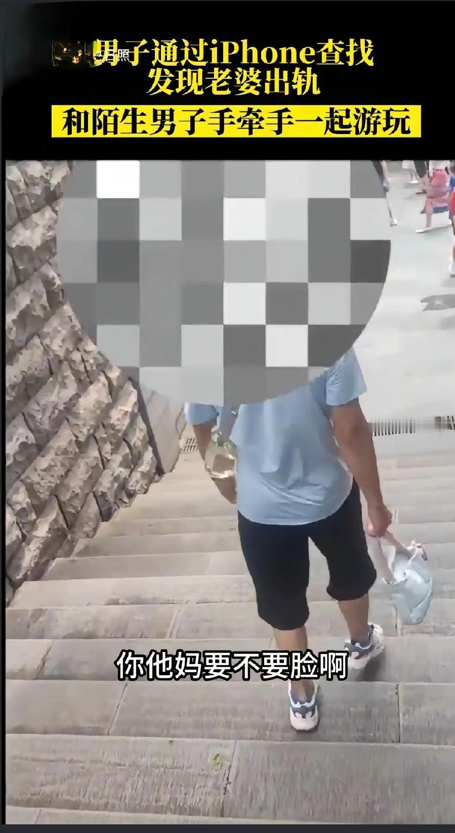 网友就上心了,开始用iPhone手机定位来寻找妻子,结果发现她正一脸幸福地和陌生男子手挽手地爬山。
