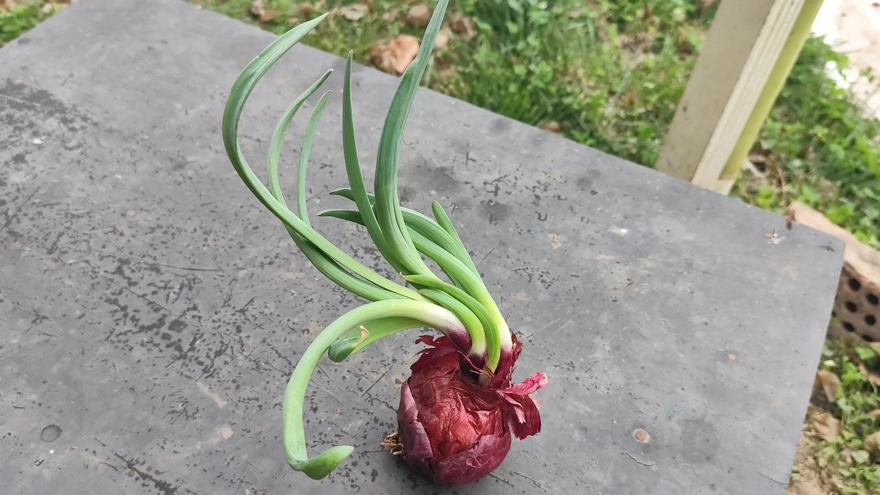 晒图笔记大赛今天才发现,没有来得及吃的洋葱发芽了,觉得她长得还挺妖娆多姿的!原来