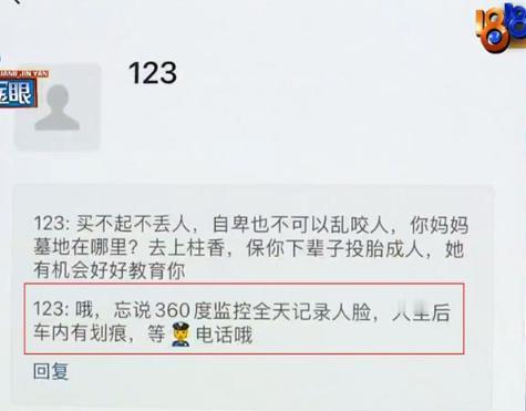 第二天,女友的微信收到两个陌生账号的好友申请,其中一个账号名称和她的网名对应,带有明显针对性。通过申请后,对方发来信息,称“买不起不丢人,自卑也不可以乱咬人”,还诬陷王先生看车时划伤了豪车,威胁“等帽子叔叔上门”,并无端诋毁王先生是“赘婿”。