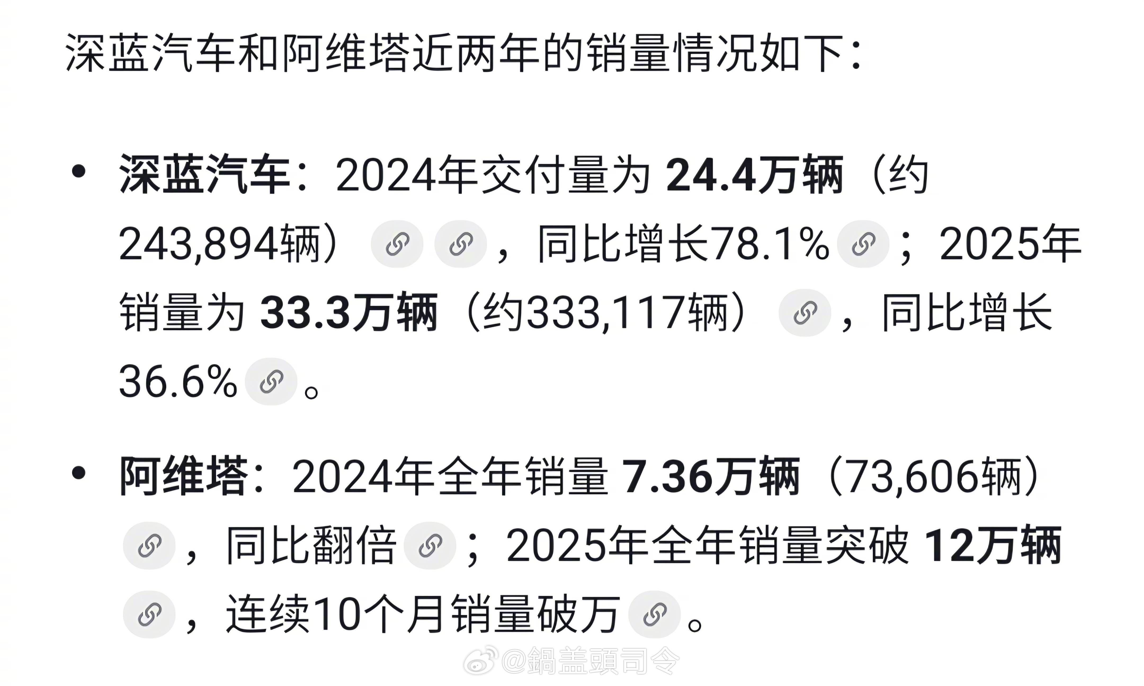 #长安汽车将整合阿维塔和深蓝汽车#搜了下深蓝和阿维塔24/25/26年销量情况。深蓝2026年1月同比增长34%,阿维塔一季度则同比下降53.5%。如果#阿维塔与深蓝汽车将整合#,也是个好事,可以集中力量,避免资源浪费,提高竞争力,有机会做得更好更大更强。
