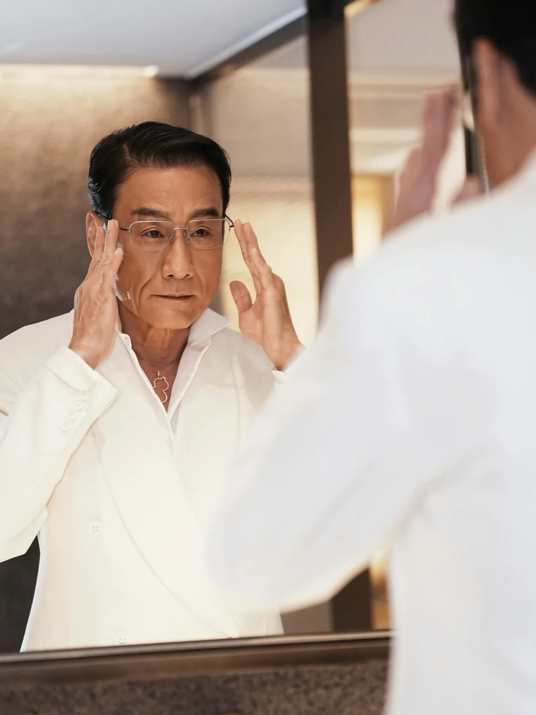 一黑一白,两种风格,却都被他穿出了高级质感。颈间的Qeelin Wulu系列项链,就是造型的点睛之笔,在简约的西装上悄悄发光!