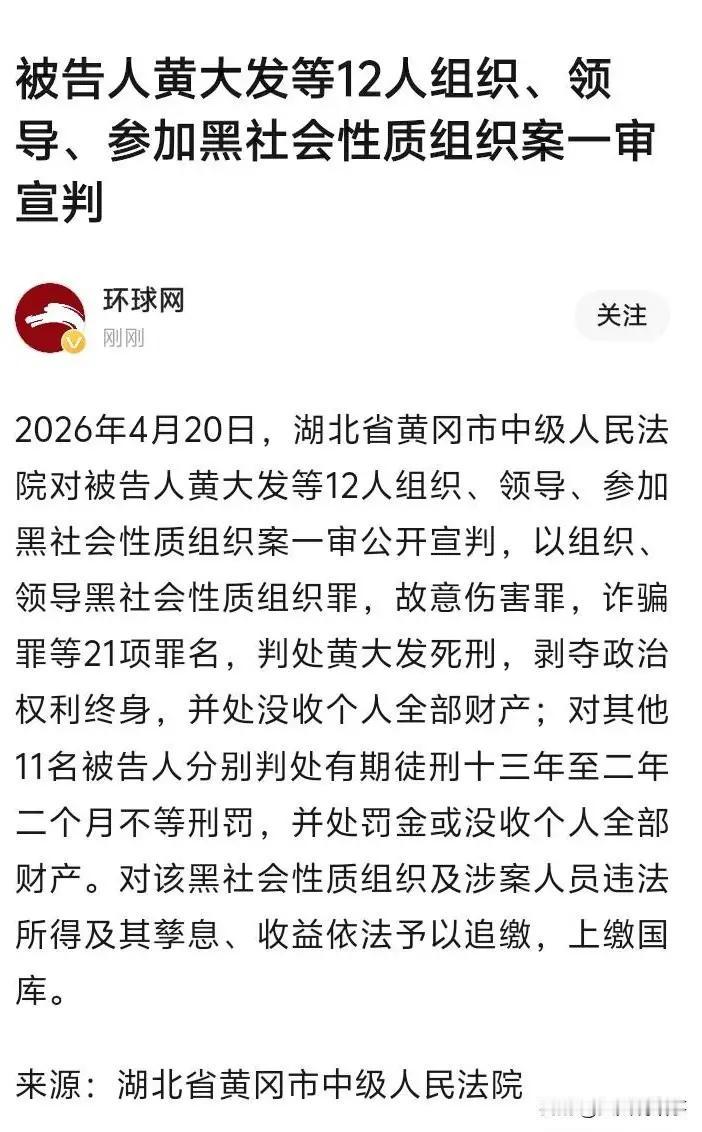 比电视剧更敢拍,比高启强更嚣张!4月20日,武汉“黑老大”黄大发一审被判死刑,21项罪名罄竹难书,这个盘踞当地近30年的毒瘤,终于被彻底铲除。