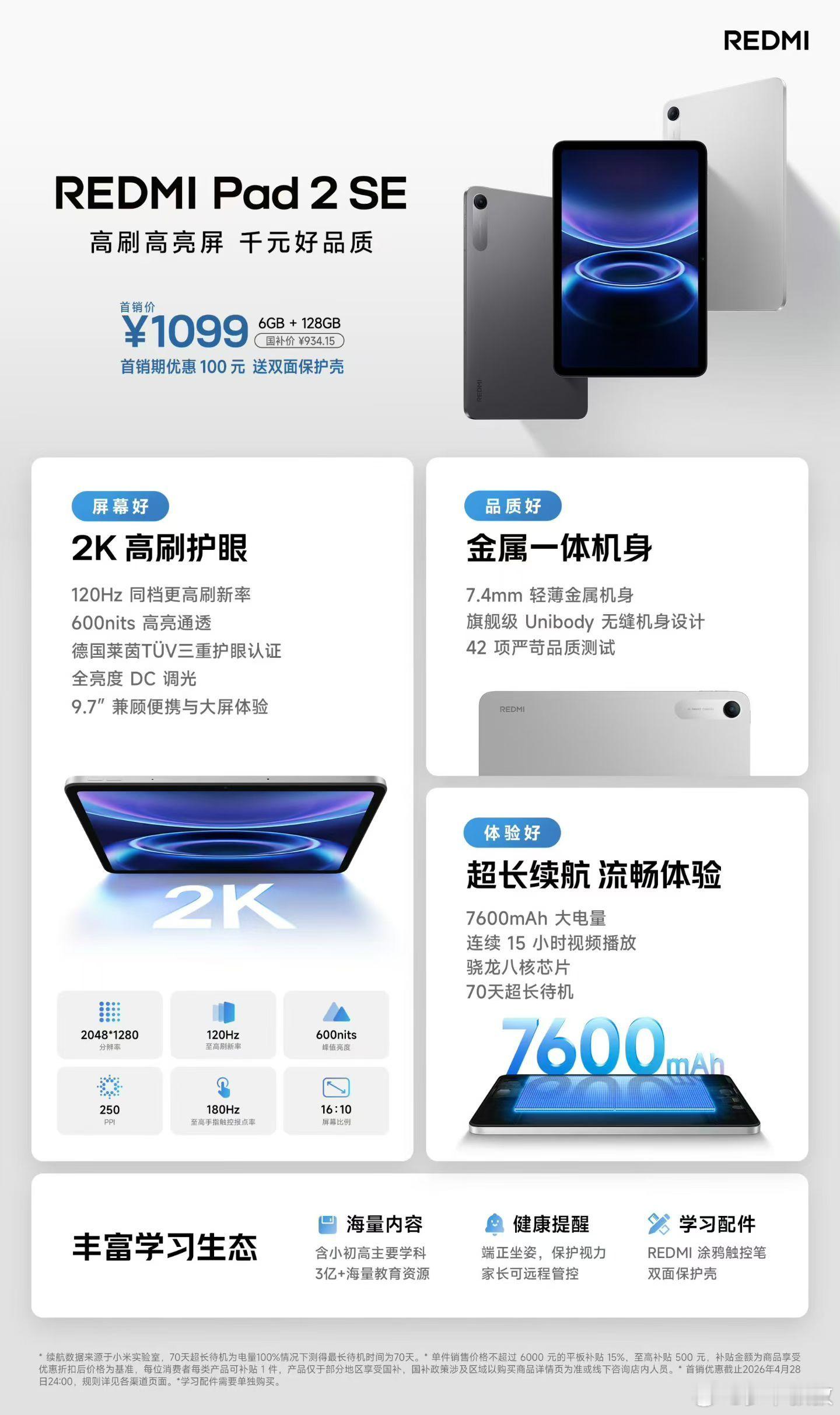 REDMIPad2SE现已开售,首销价1099元!屏幕好|2K超清