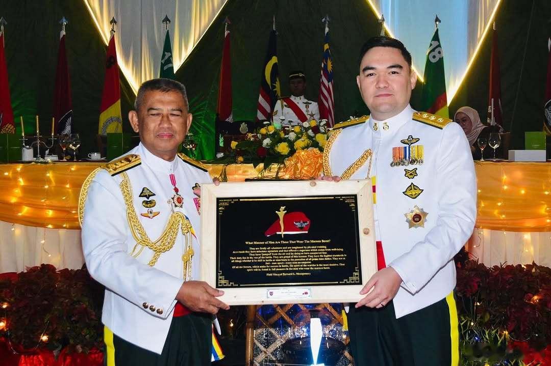 马来西亚王室 🇲🇾4月18日,雪兰莪王储阿米尔·沙阿和王储妃阿芙扎·法蒂妮出席第10空降旅主办的军团晚宴,殿下此次莅临,是以曾一同在第10空降旅服役的战友身份共叙情谊。第10空降旅指挥官回顾了殿下的军旅起点:从陆军军官学院起步,至2015年赴英国桑赫斯特皇家军事学院深造。殿下回国后,于2016年4月加入隶属第10空降旅的精锐部队——第17皇家马来兵团(空降),开启军旅生涯新篇章。殿下在陆军服役近11年的奉献与功绩告一段落,自2025年11月19日起,殿下正式调任马来西亚皇家海军,继续军旅生涯,出任海军军官,这一任职与雪兰莪苏丹担任马来西亚皇家海军名誉舰长一职相契合。世界各国王室王储妃估计有了