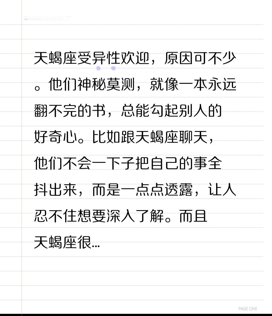 天蝎座受异性欢迎,原因可不少。他们神秘莫测,就像一本永远翻不完的书,总能勾起别人的好奇心。比如跟天蝎座聊天,他们不会一下子把自己的事全抖出来,而是一点点透露,让人忍不住想要深入了解。