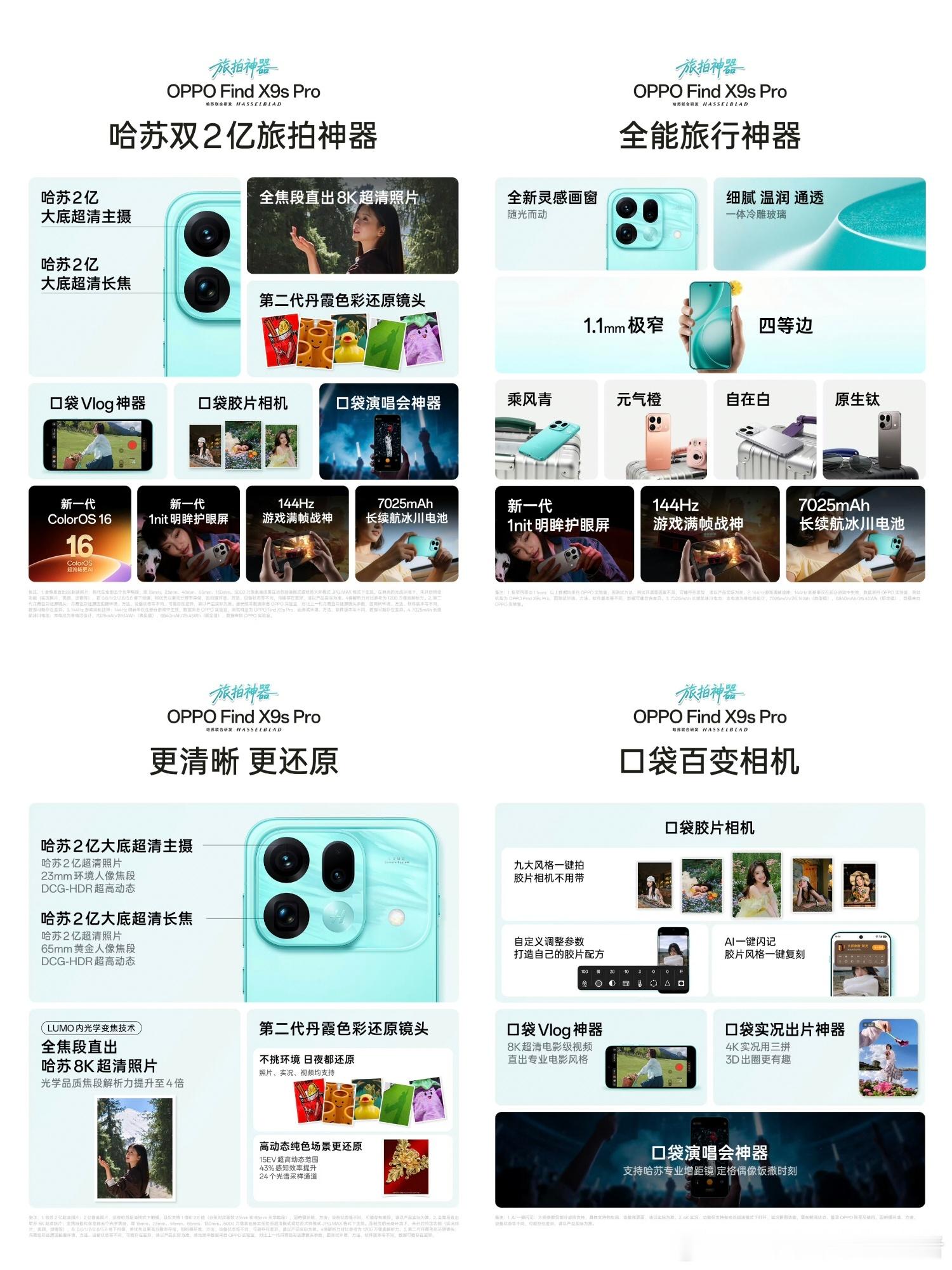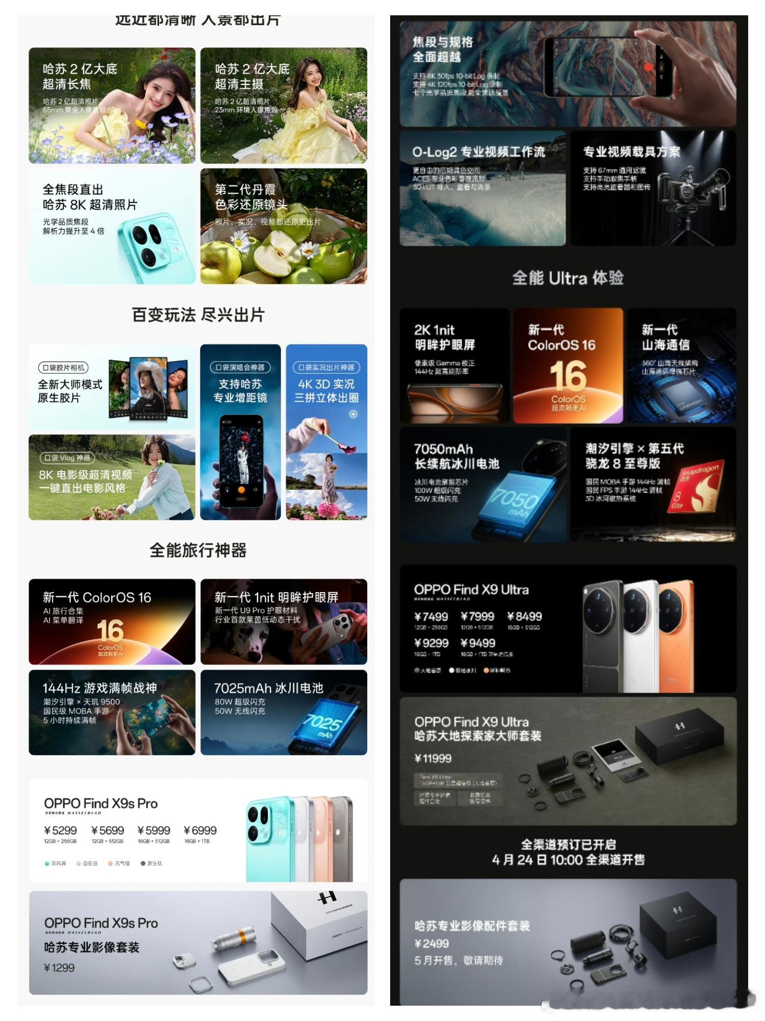 其中,OPPO Find X9S Pro的 售价为5299元至6999元,哈苏专业影像套装是1299元,整机主打的是均衡和影像系统。两亿像素哈苏大底主摄、两亿像素哈苏长焦镜头,也有第二代丹霞色彩还原镜头。联发科天玑9500芯片、144Hz刷新率,7020毫安大电池,整体还不错。