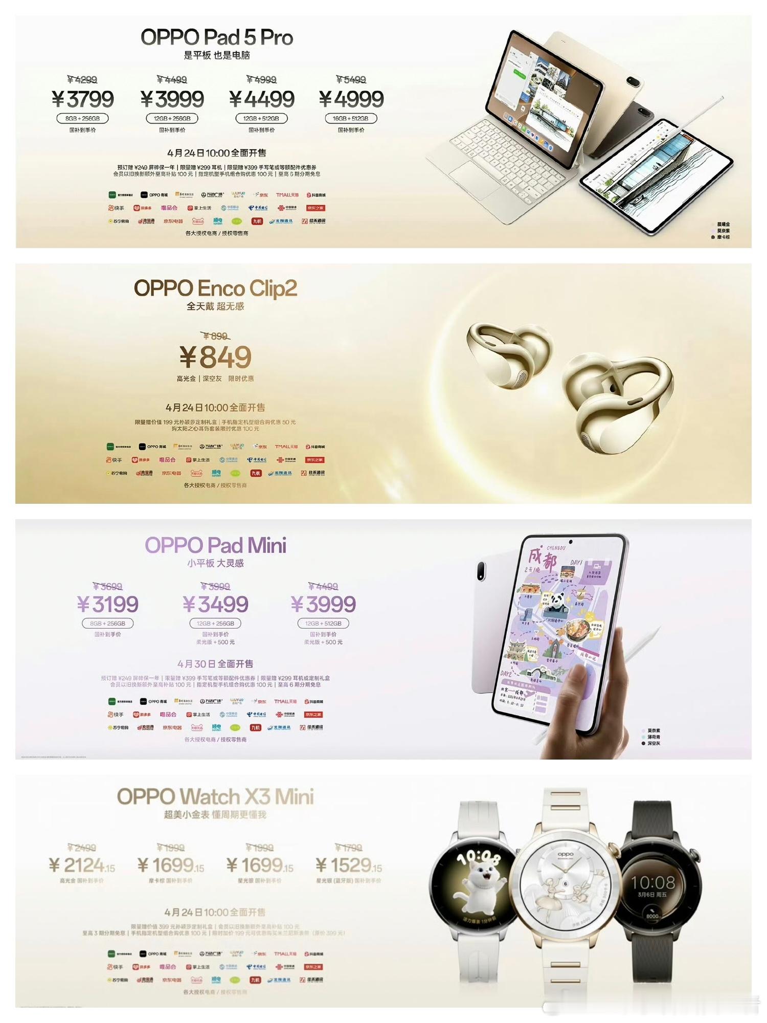 此外,耳机、小平板等产品价格都还行,尤其是OPPO Enco Clip2耳夹耳机,849元价格不错,主要体验是挺好的。