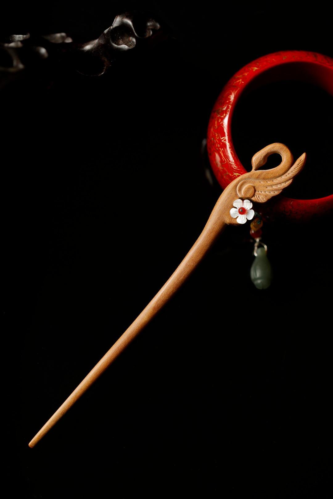 老山檀香【天鹅】发簪美好的器物能为人增添光彩,尤其在青丝上点缀珠玉金银,在鬓发间