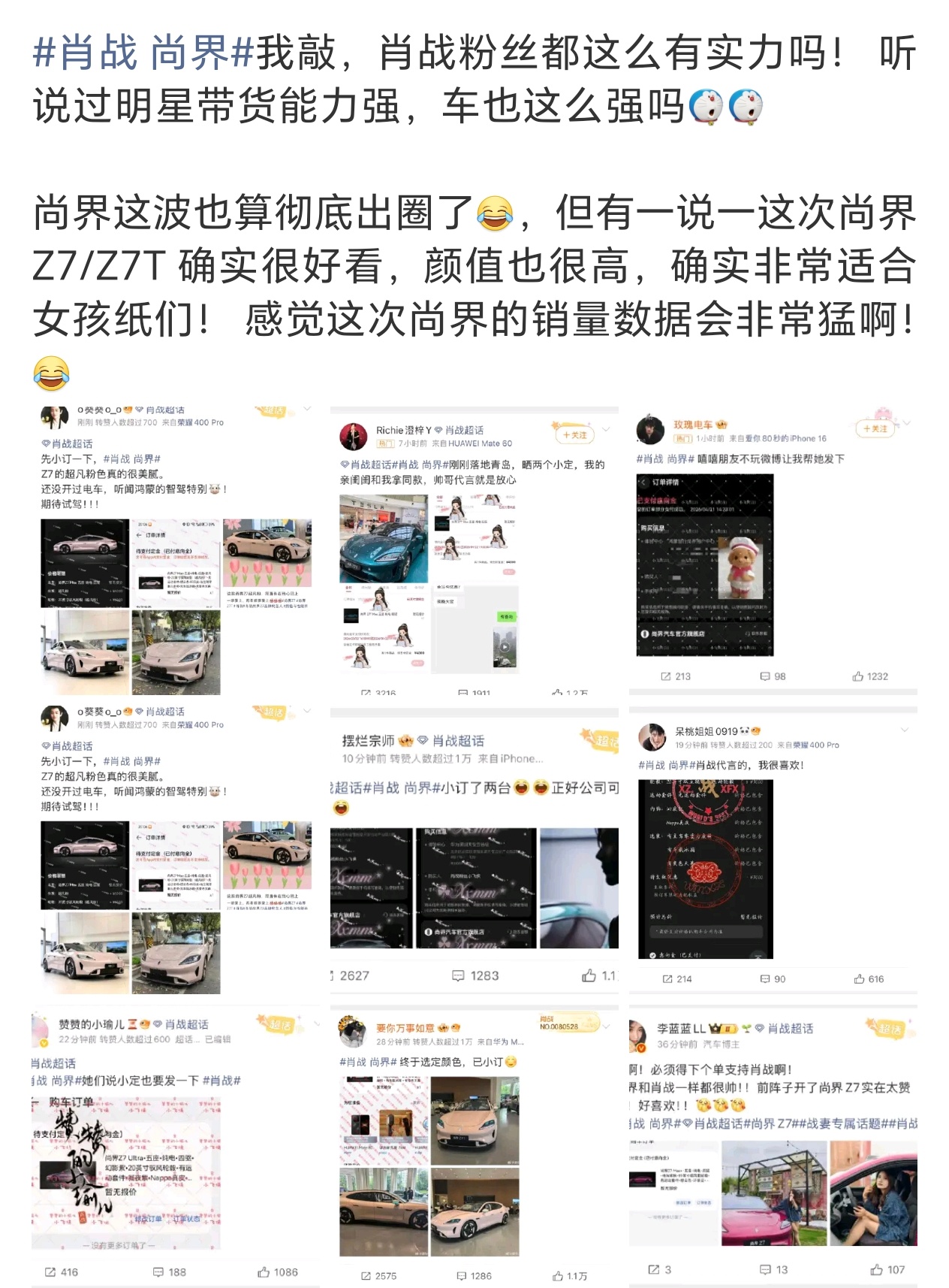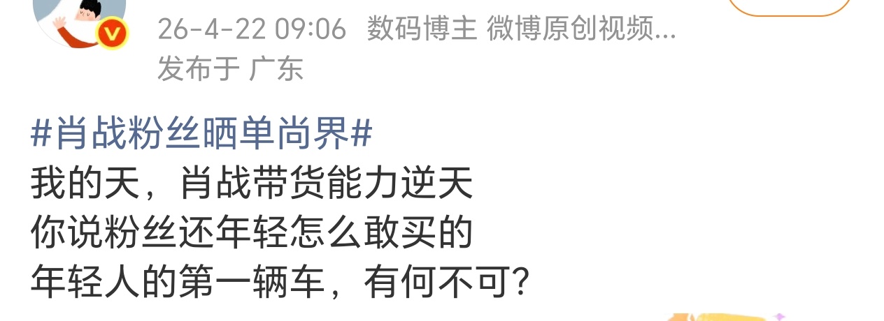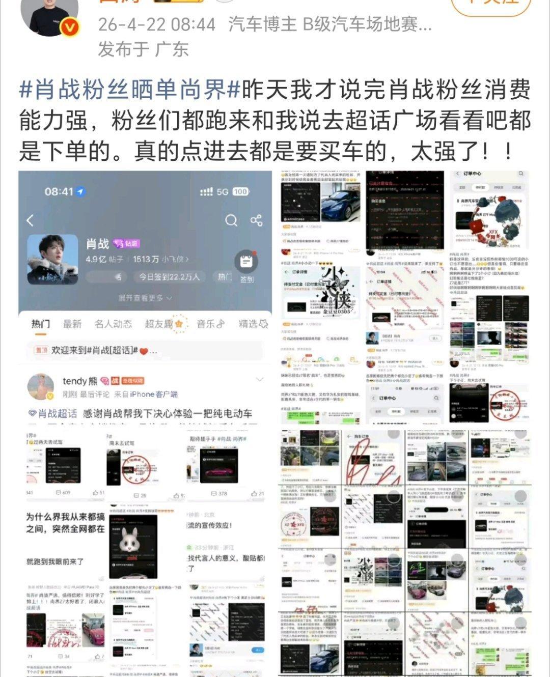 肖战粉丝晒单尚界肖战代言尚界尚未官宣,仅预热首日的声量和订单量已全网轰动,强势破