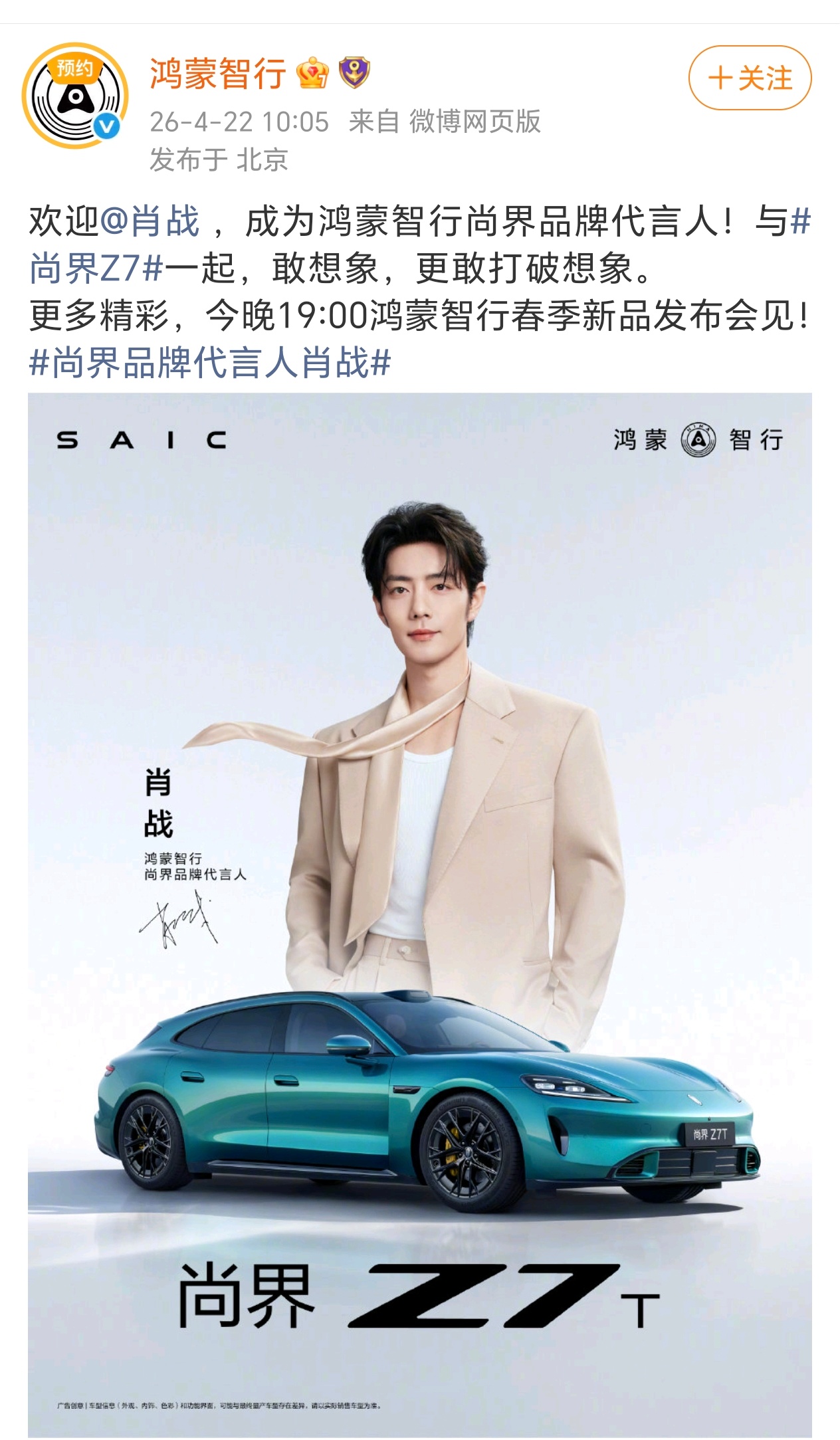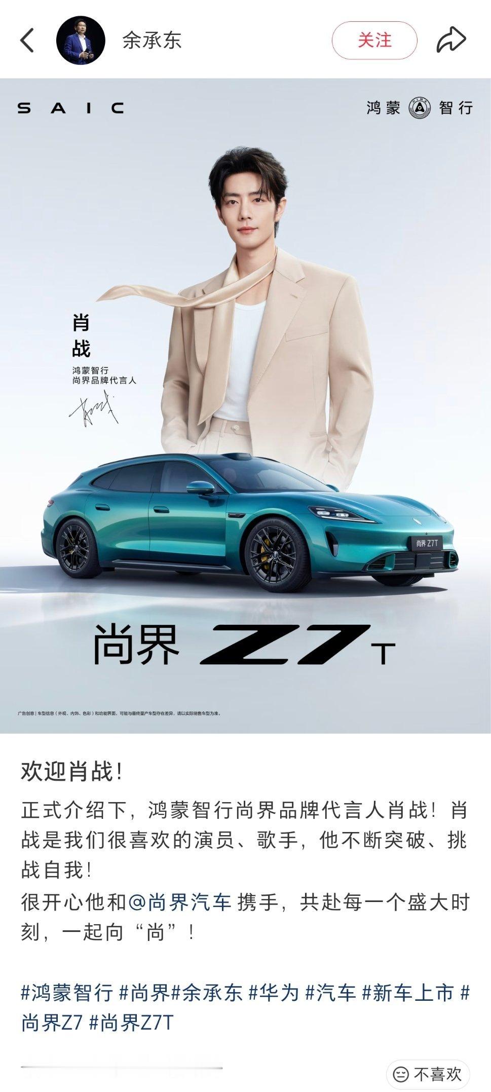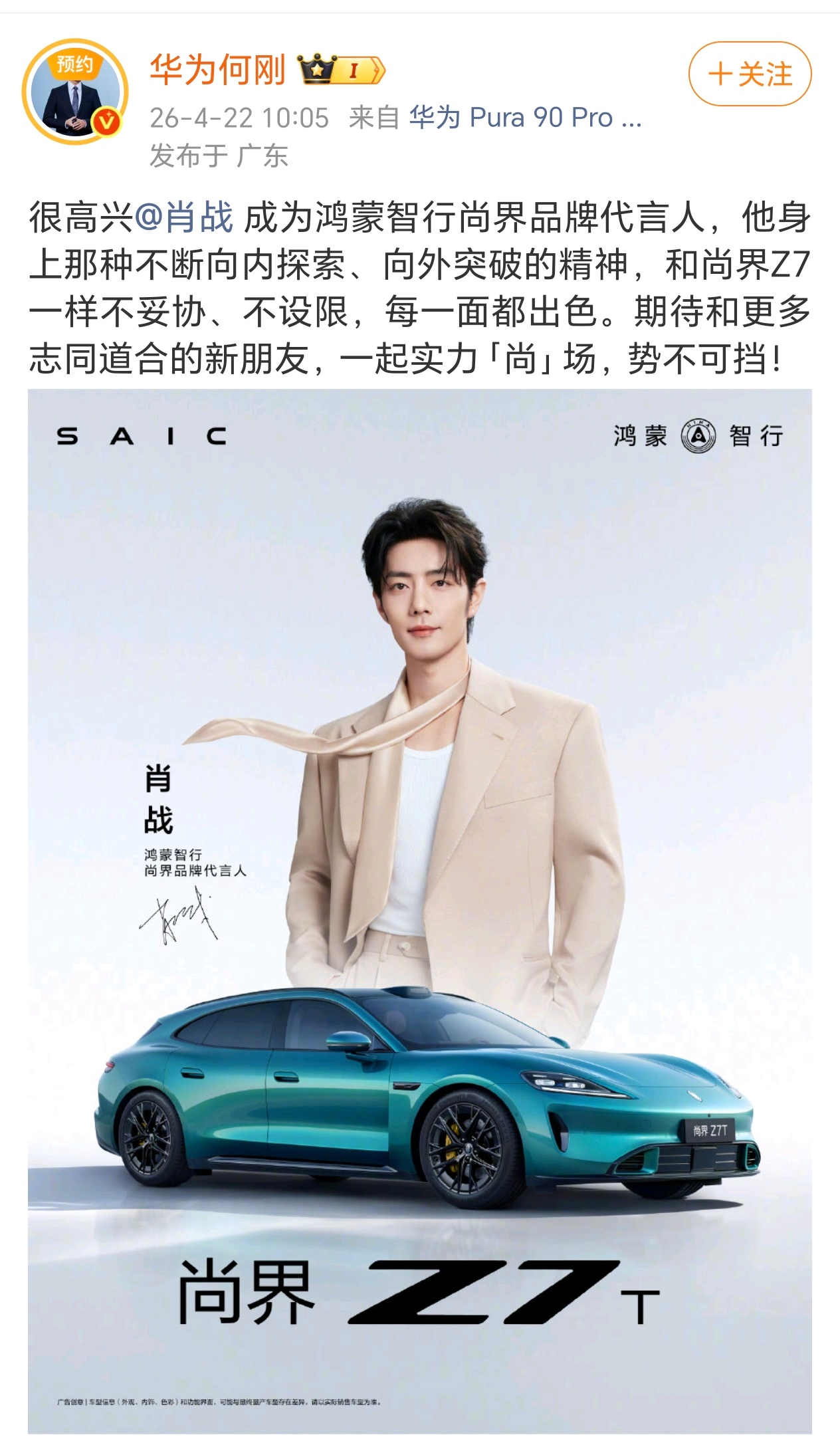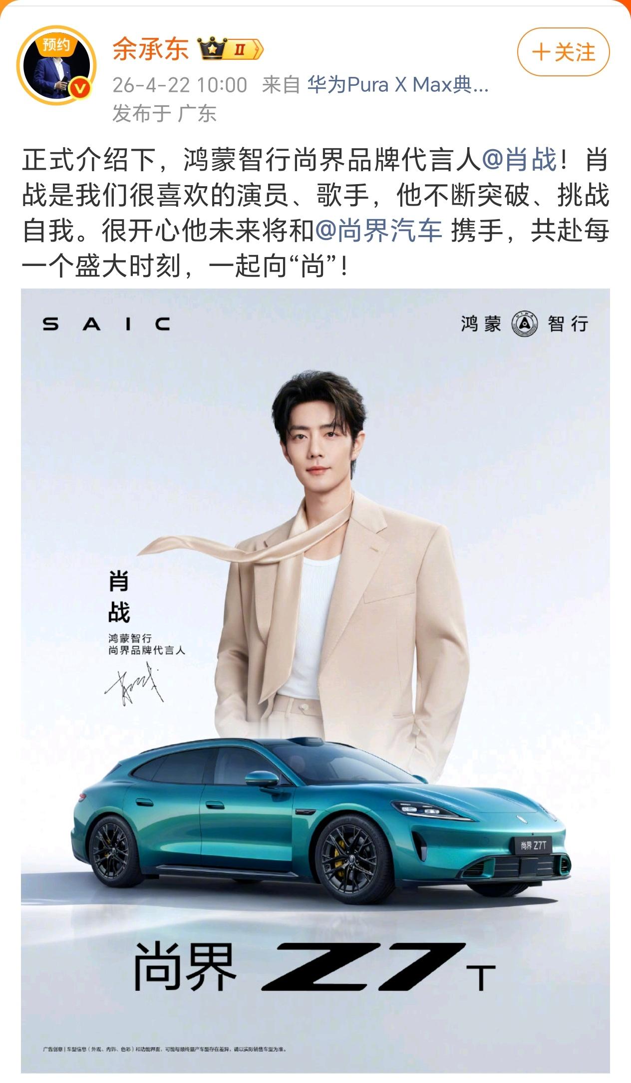 肖战代言尚界余承东亲自官宣,零考察期空降最高title。内娱仅此一位。