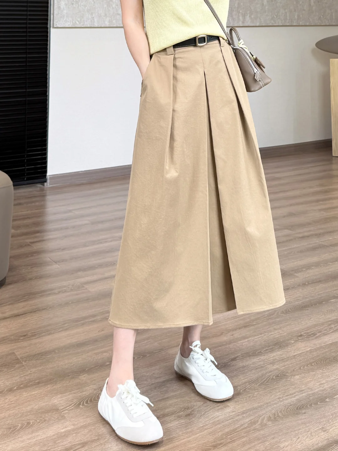 158小个子穿搭 梨形身材穿搭 夏季穿搭 蓝色条纹衬衫 半身裙穿搭 miu系穿搭 卡其色裙子 时髦穿搭 高级感