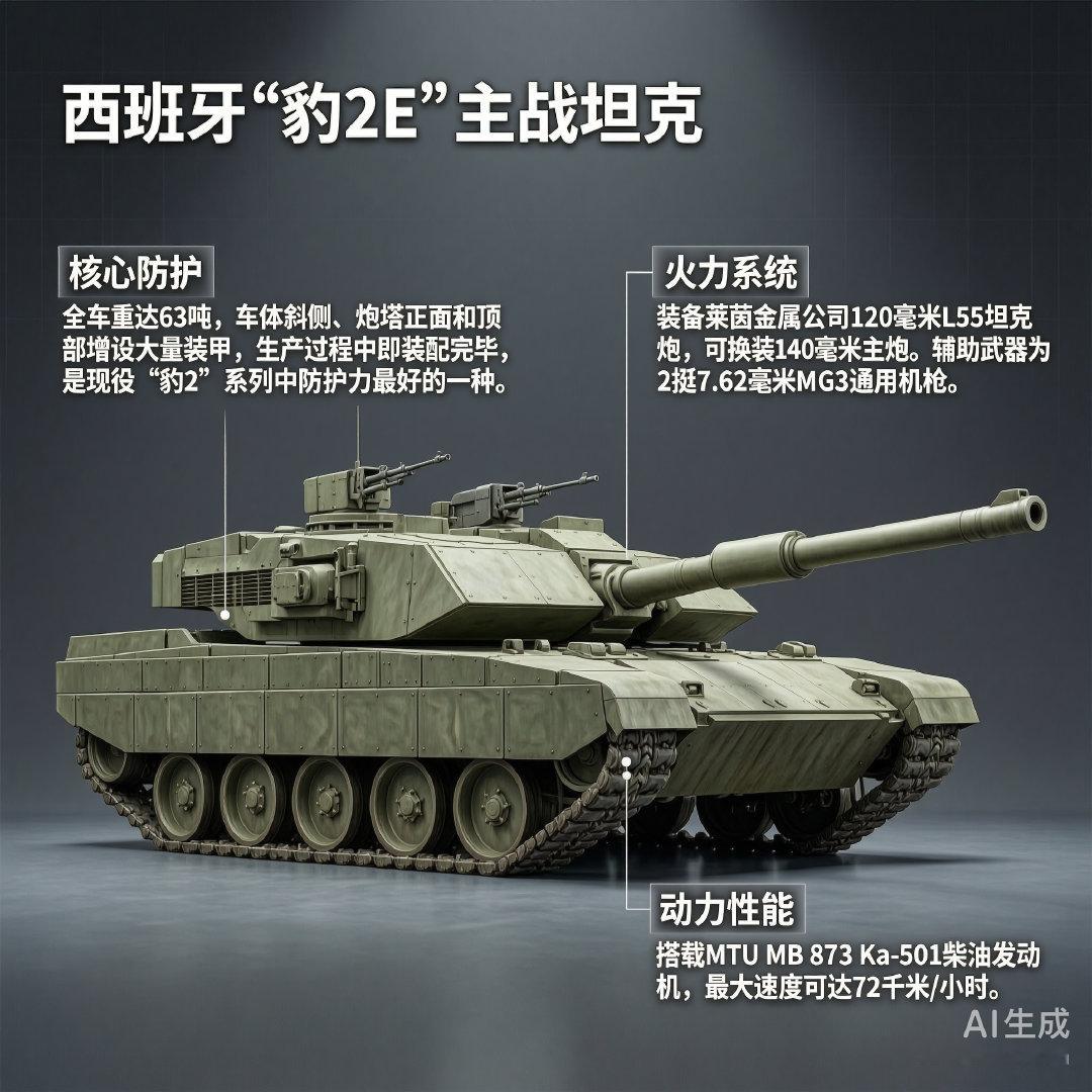 军事ai新视野 西班牙“豹2E”主战坦克“豹2E”(Leopardo 2E)坦克