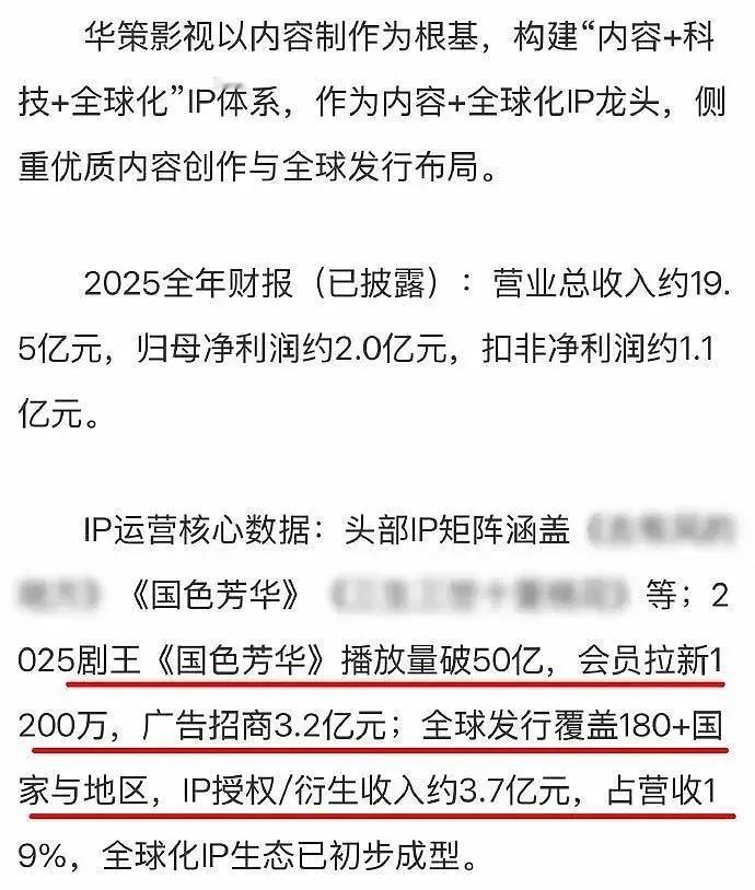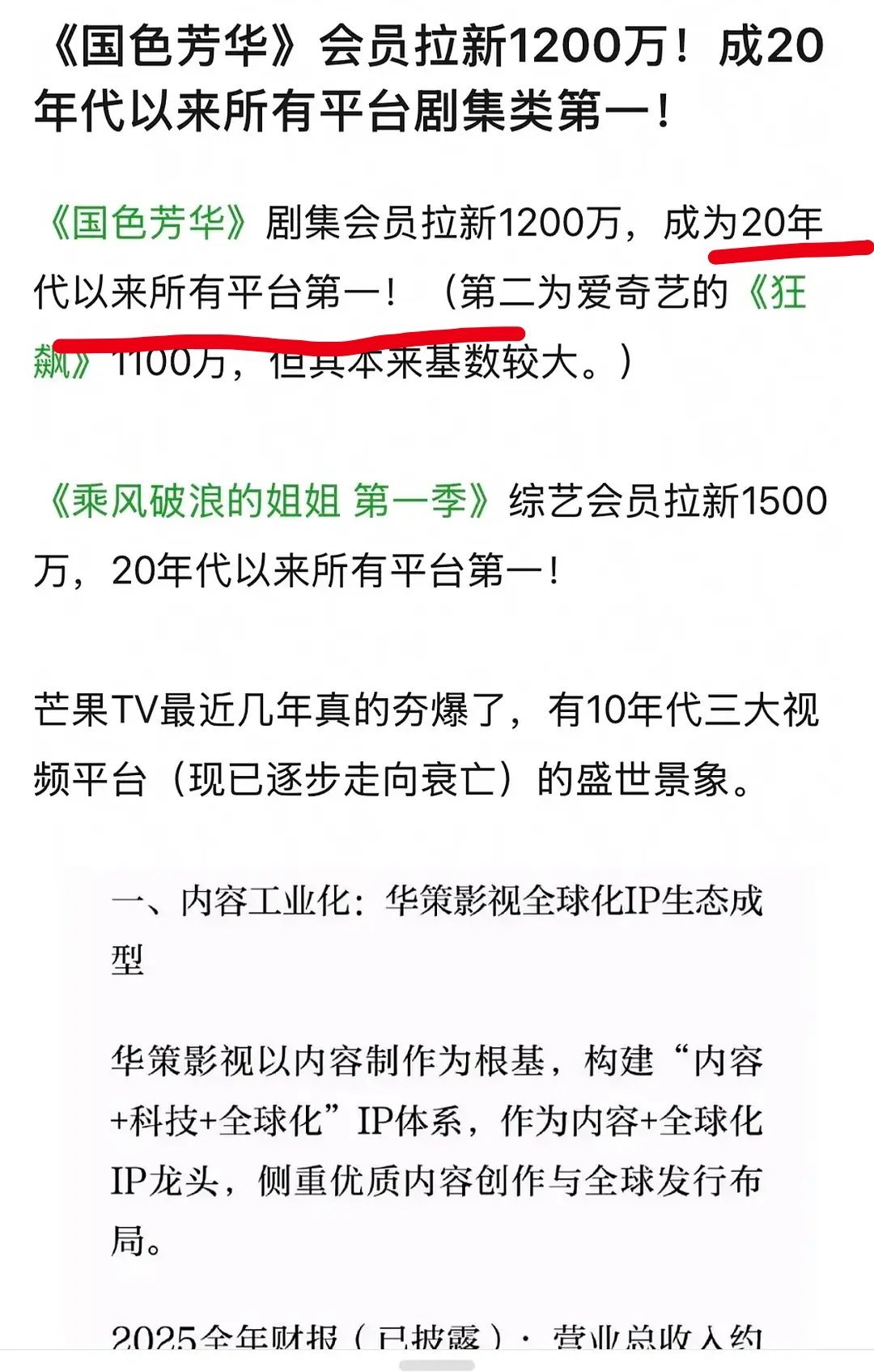 国色芳华赚这么多会员拉新1200万,是20年以来全平台第一(狂飙第二1100万,本身🍑会员基数就比🥭大招商3.2亿,ip授权衍生收入3.7亿占华策25年营收19%衍生游戏我的花园世界ios周榜前十