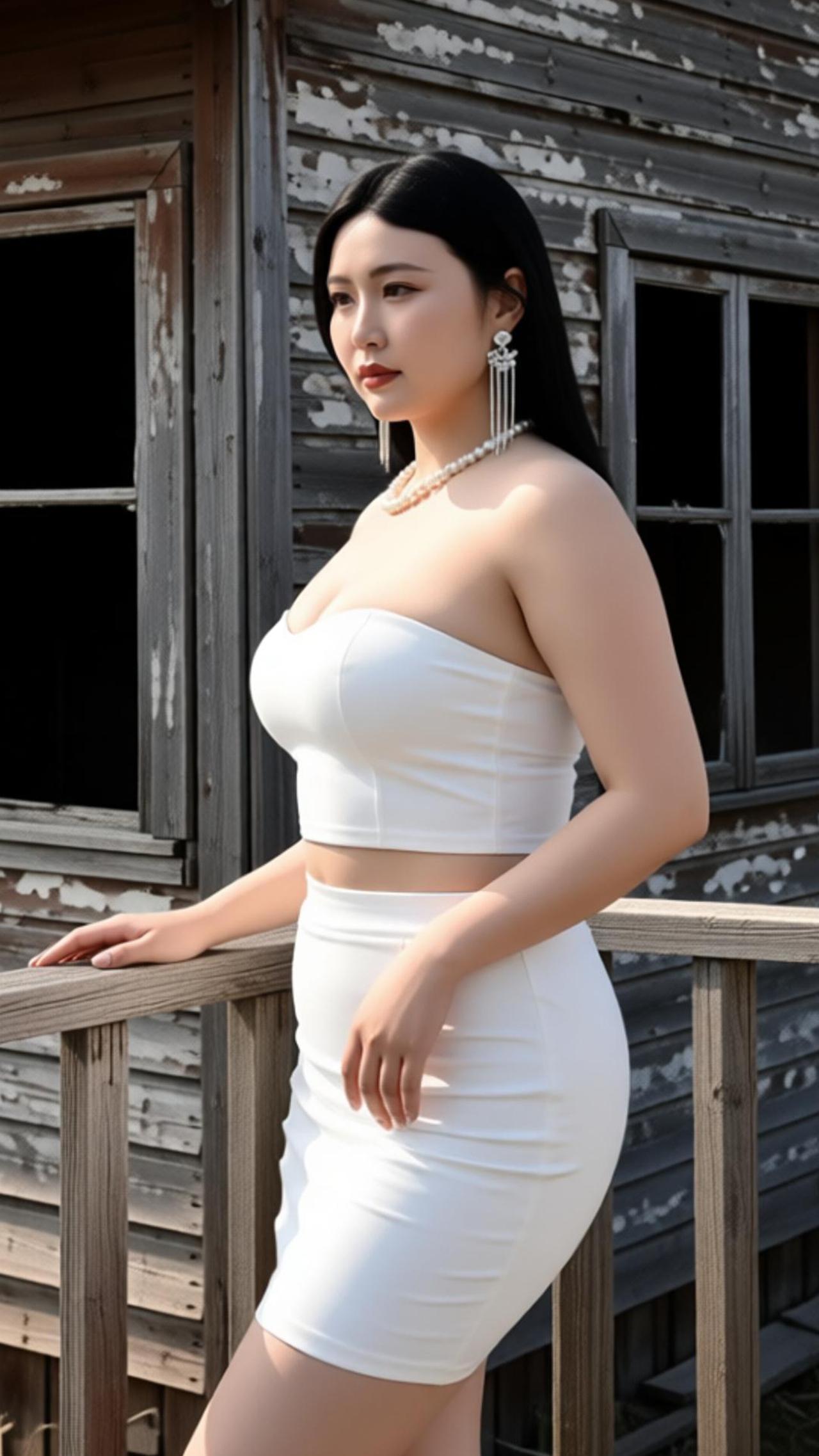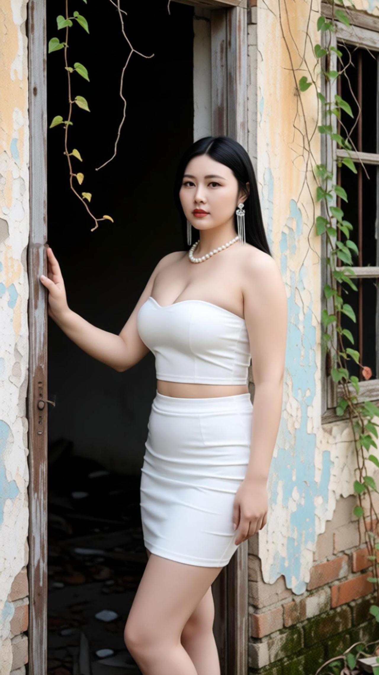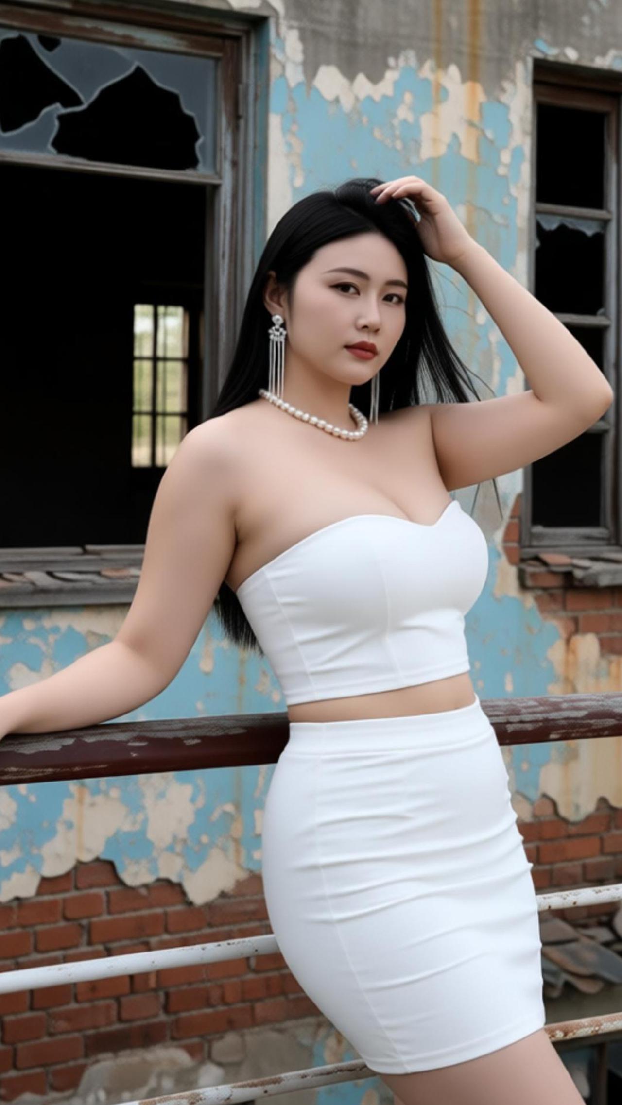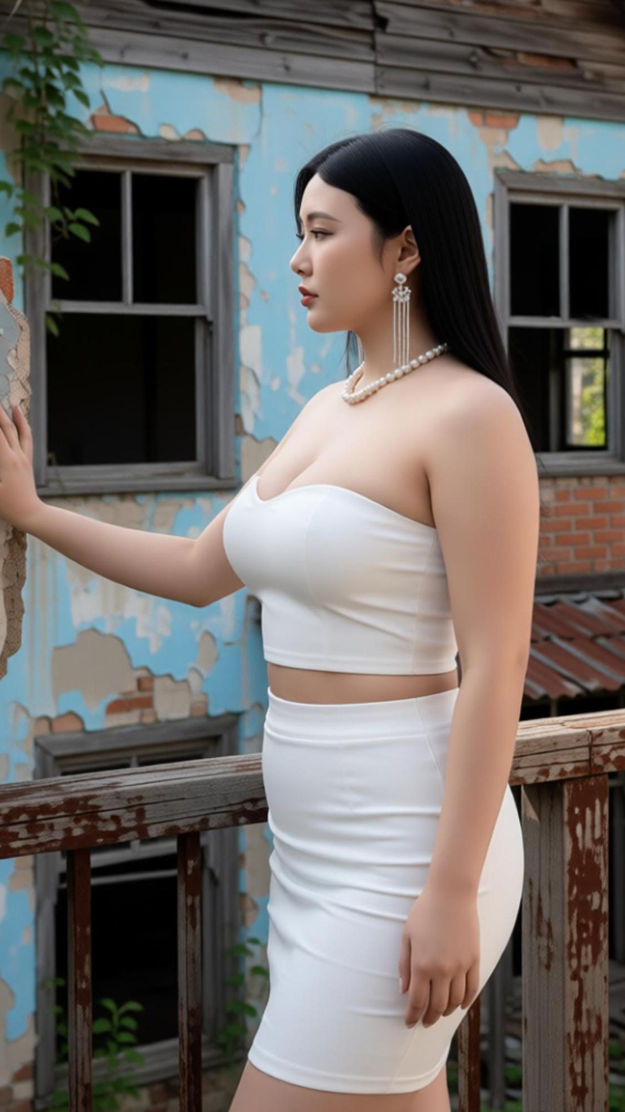 小姐姐真是绝了,整体形成的视觉反差美,斑驳老墙晕着旧时光的底色,红瓦木窗藏着岁月的低语。一袭纯白抹胸套装,勾勒出利落又柔美的曲线,珍珠项链与流苏耳饰摇曳着精致,和身后褪色的墙皮撞出复古与摩登的奇妙火花。苏念念凭栏而立,侧影清冽,像从旧时光里走出来的现代诗,在老建筑的褶皱里,写满了关于优雅与从容的注脚。