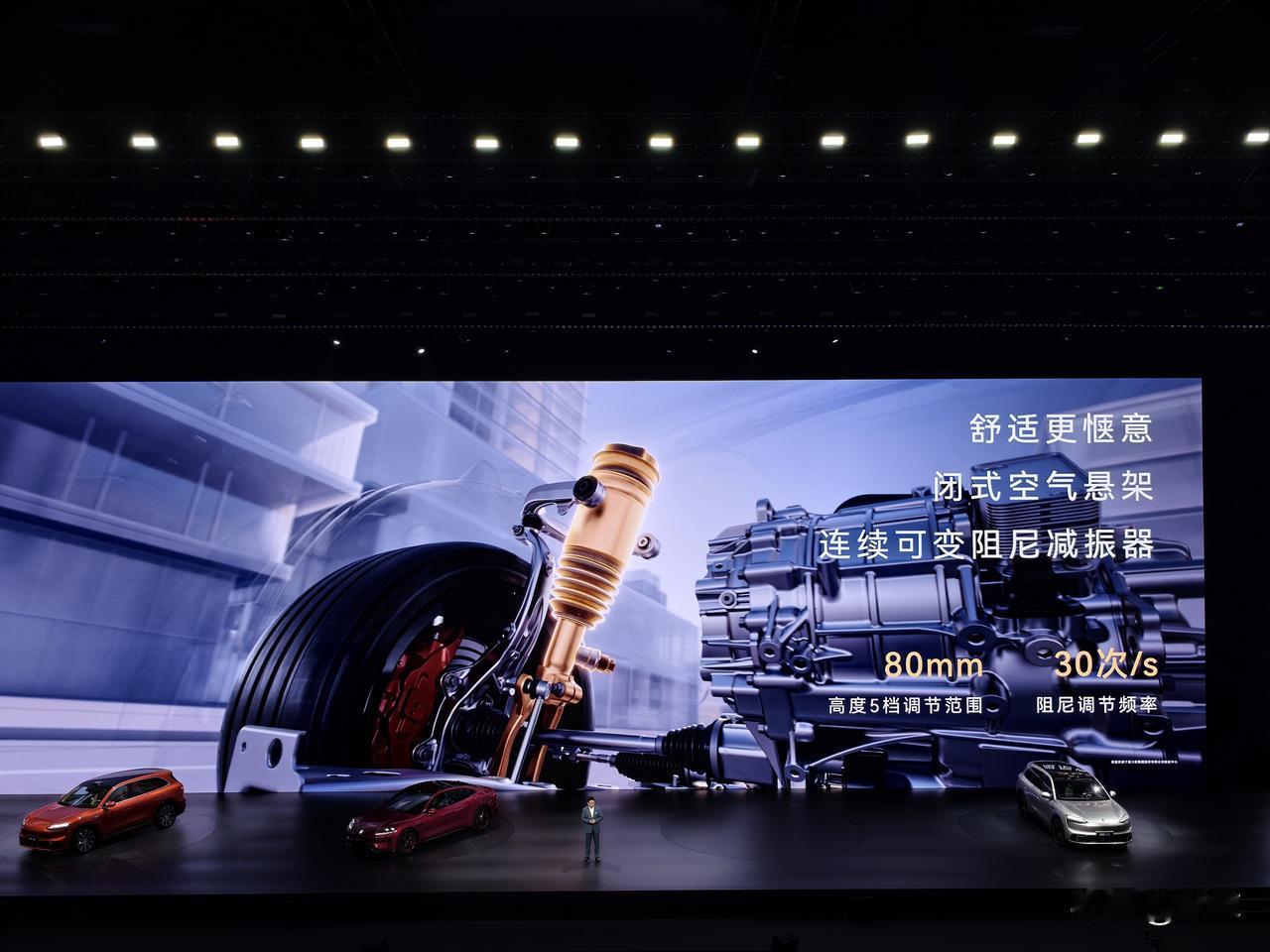 全系标配华为途灵平台,前双叉臂独立悬架搭配后五连杆独立悬架;全系标配闭式空气悬架搭配连续可变阻尼减振器。