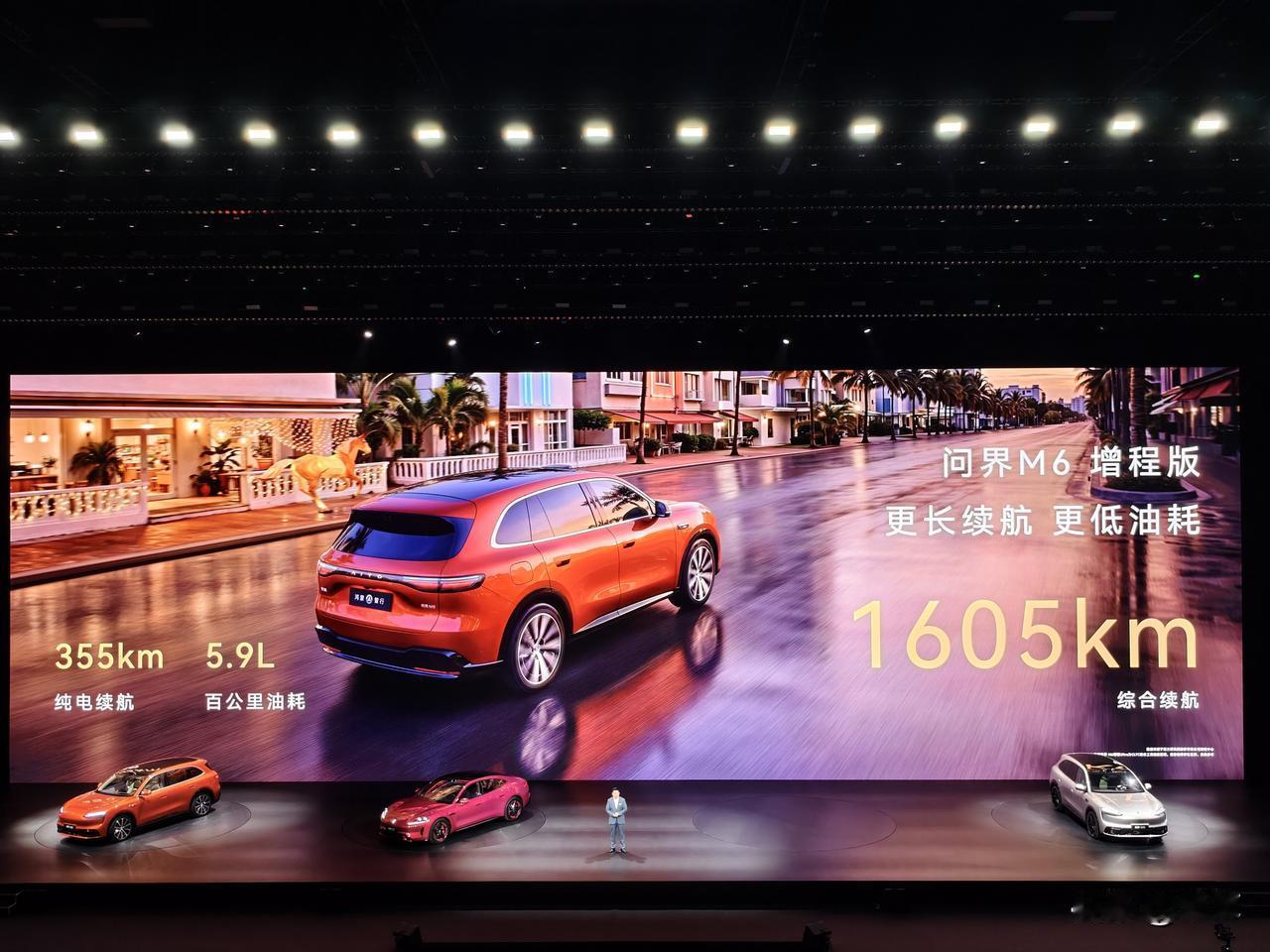 搭载华为巨鲸电池平台,纯电版全系标配100kWh三元锂电池包,CLTC续航里程至高760km;增程版CLTC综合续航至高1605km,CLTC纯电续航至高355km,百公里油耗低至5.9L。