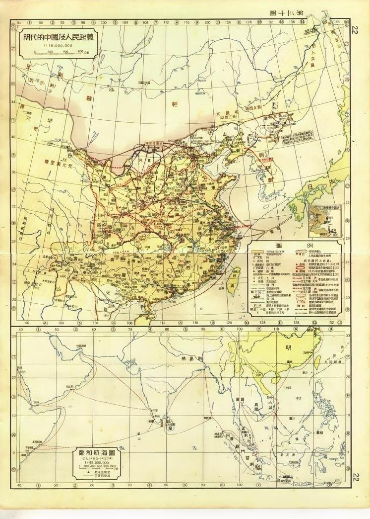 一方晒出永乐年间的《大明混一图》,说:看看!远迈汉唐,1000万平方公里!
