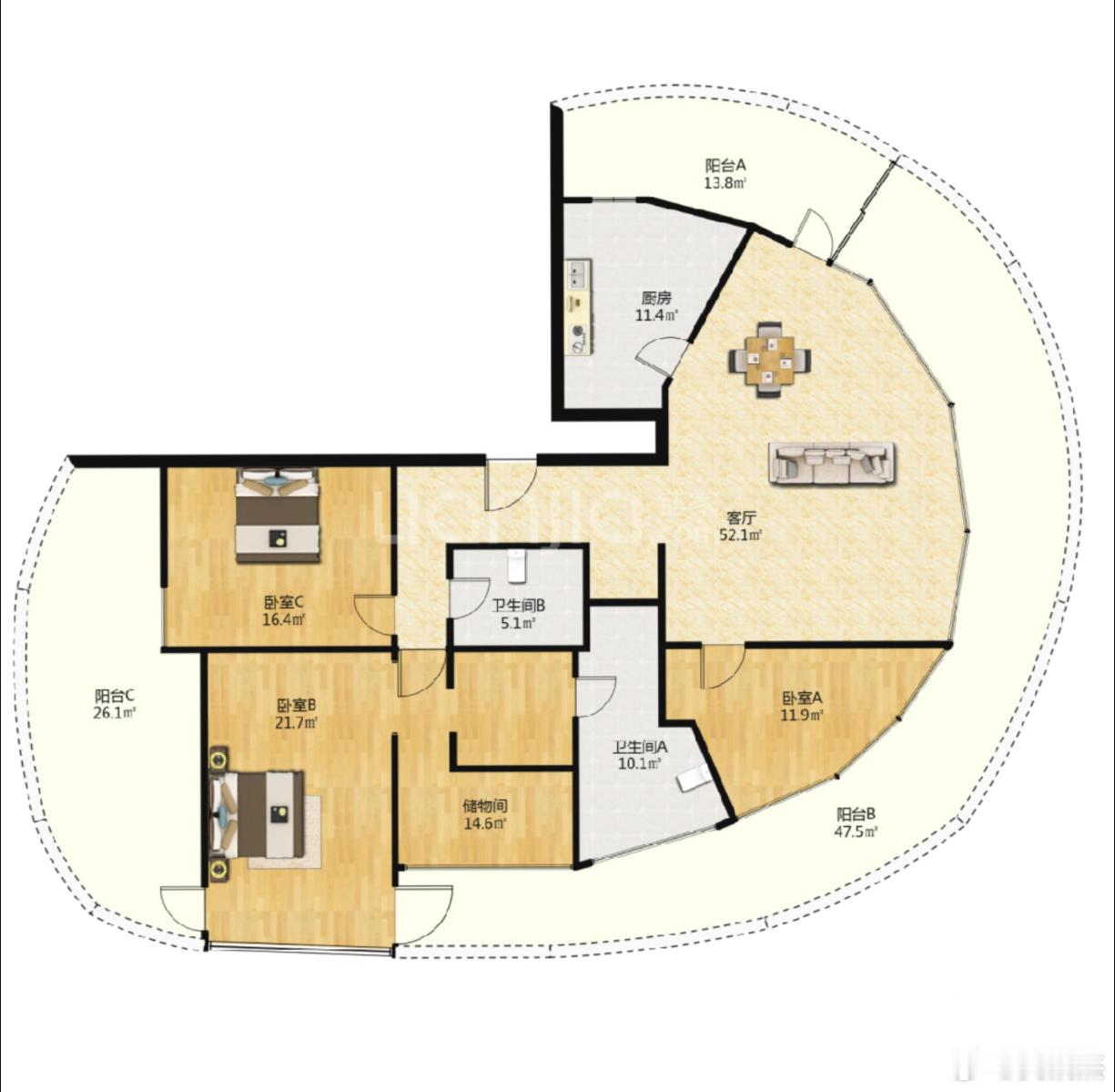 完美户型,几乎没有缺点。