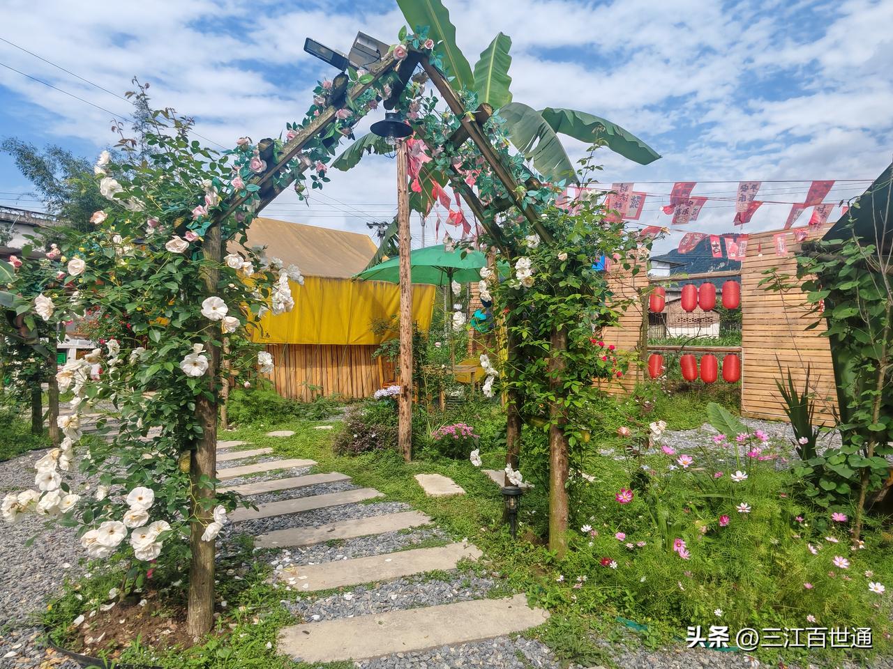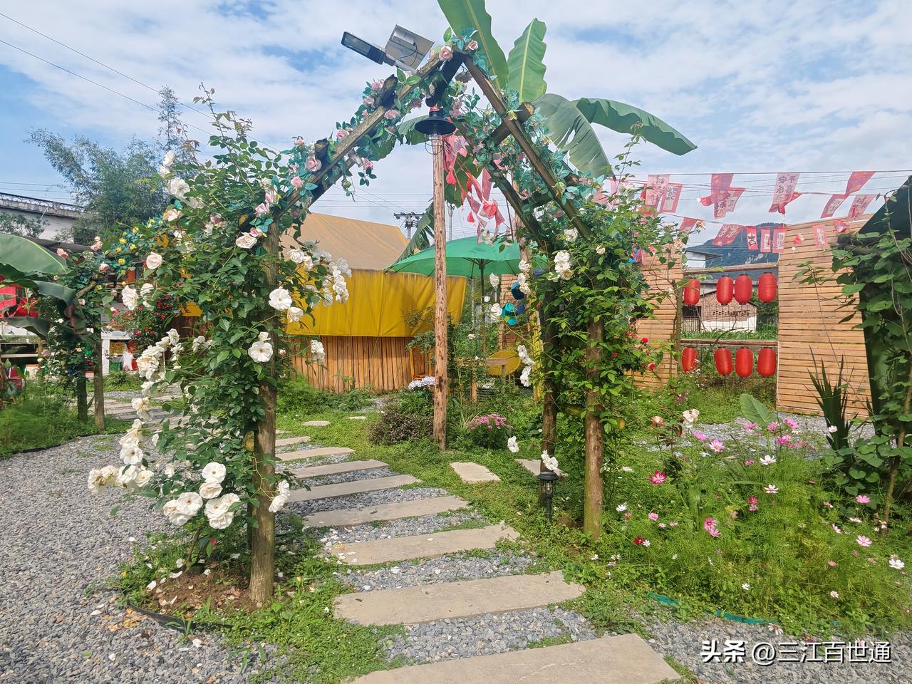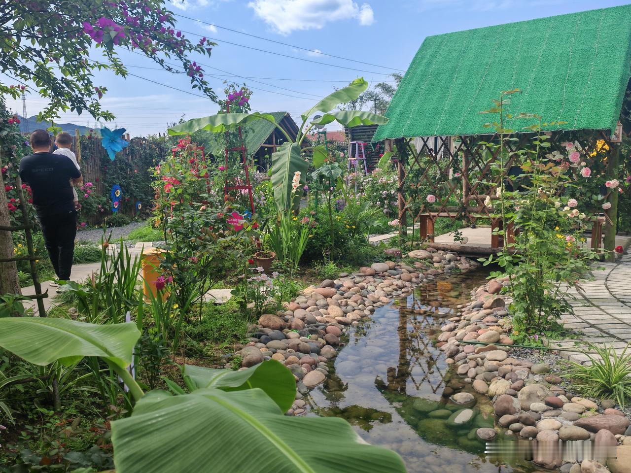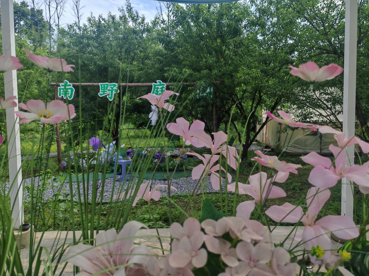 在长宁双河镇!一个镇上有这样一个农家乐确实还是比较少见,他推门不是高楼大厦,是田野,晚上是蛙声,是大家想要的那种美!进门又被各种花和景观环绕!精致的造型,泡上一杯咖啡,孩子在院落嘻戏!这就是双河镇南野庭院