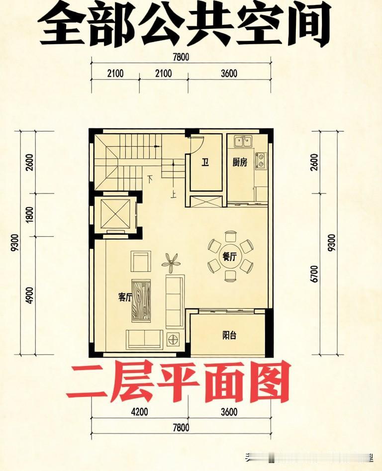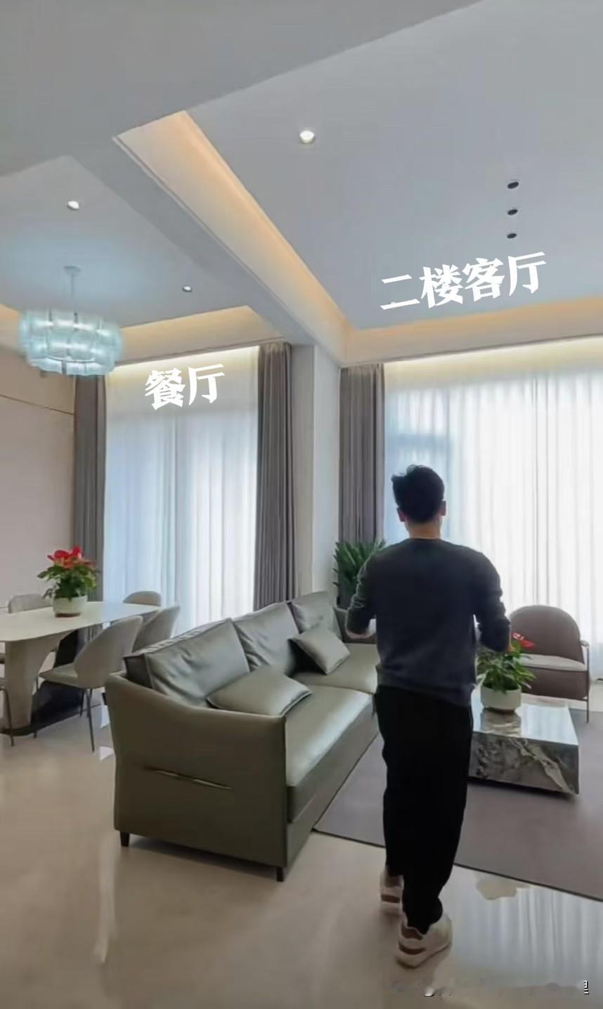 二楼客餐一体,敞亮又通透,亲戚朋友来做客都不挤;