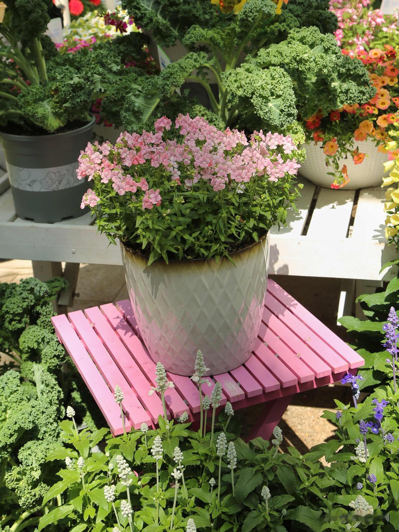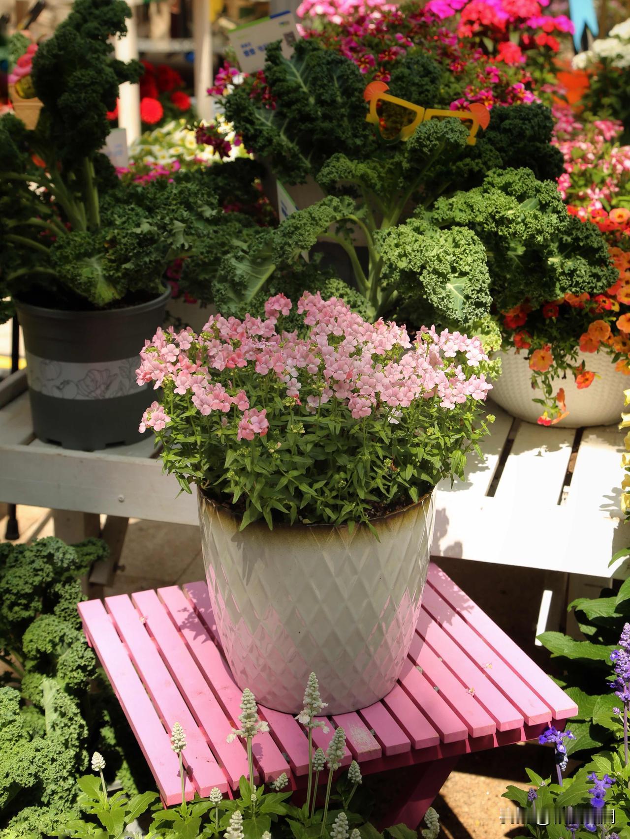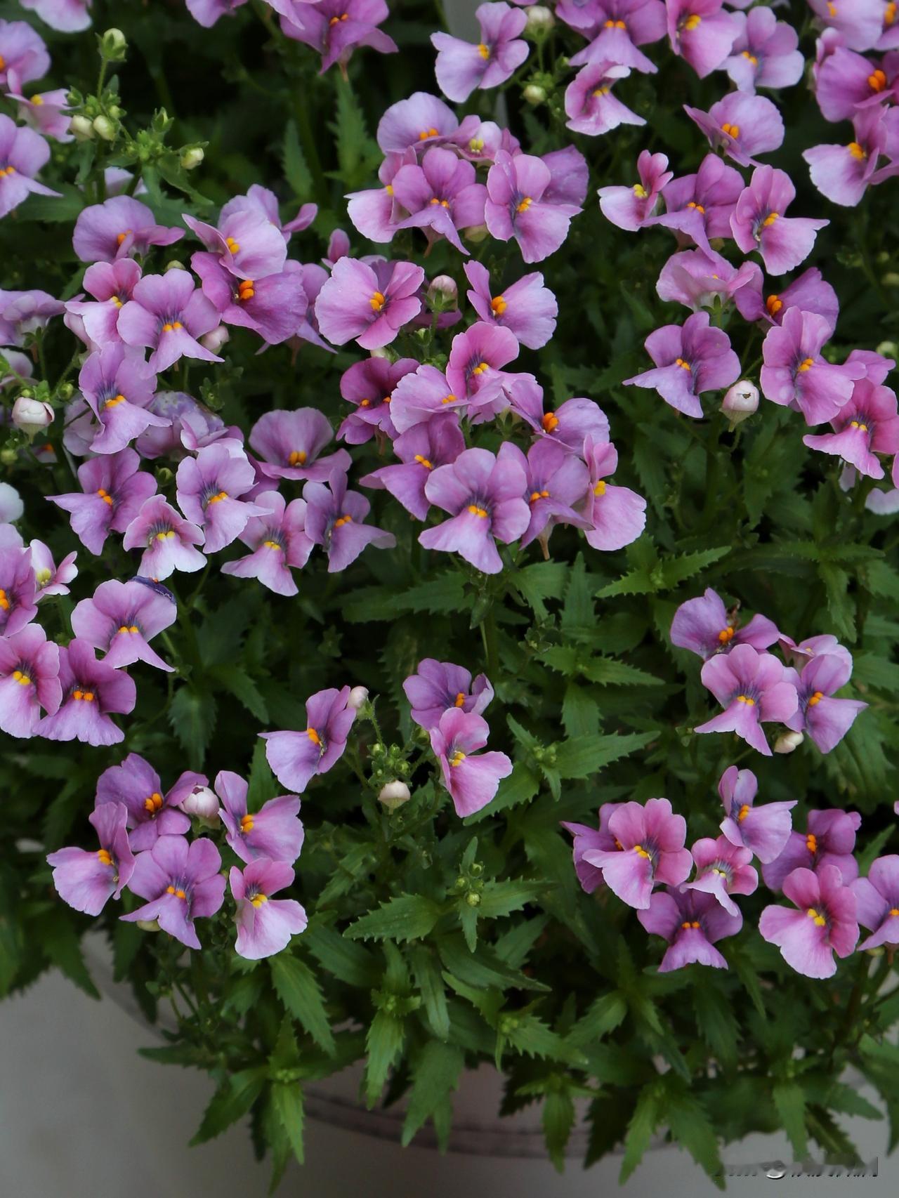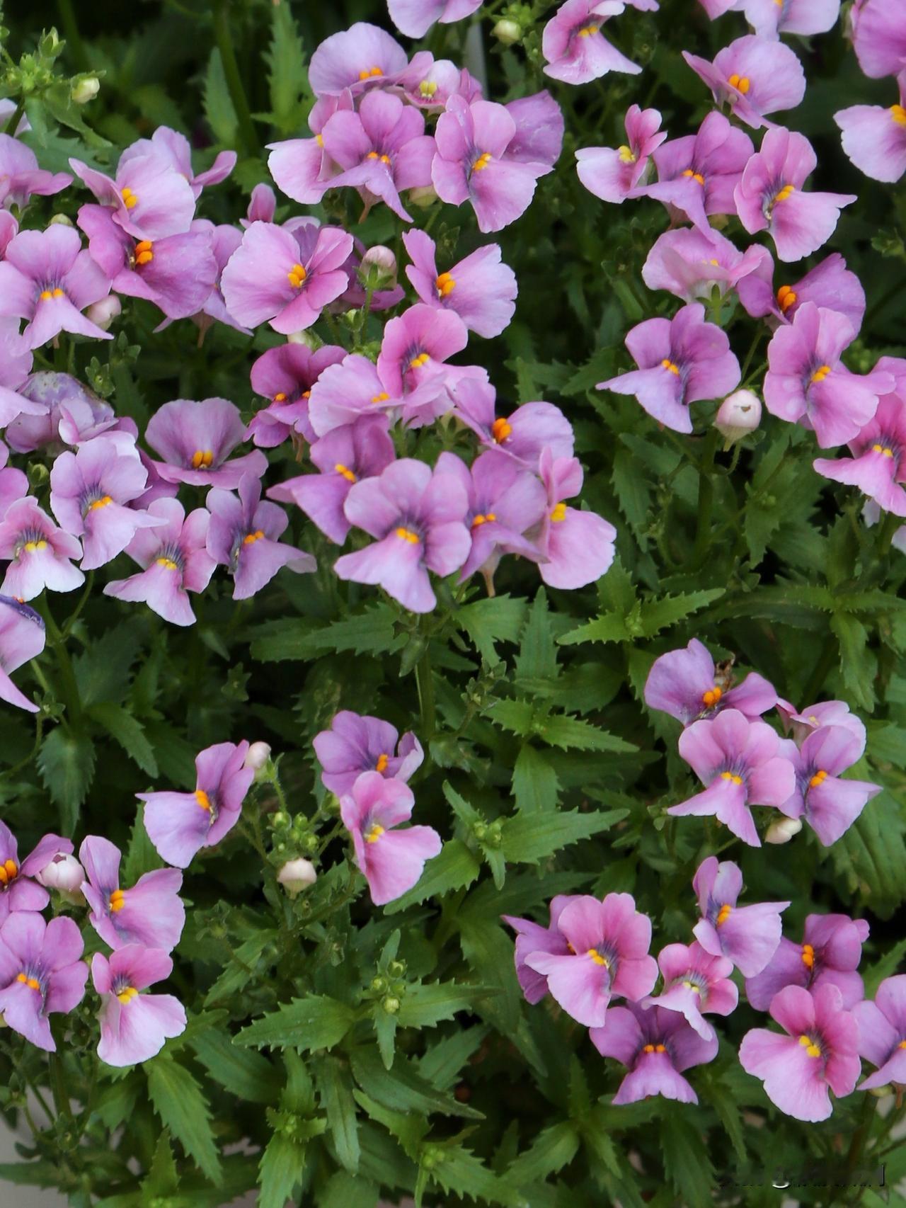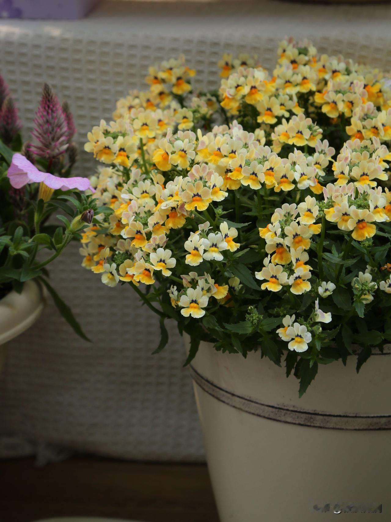 今年有一种叫做“龙面花”的新面孔植物出现在花市上,这次在花展上也见到了。龙面花是玄参科,原产地在南非。花朵分上下两部分,上面像龙角,下面像五官,花心有斑纹,所以取了个中文名叫“龙面花”。它最特殊的地方在于色彩丰富,从白色,黄色,橙色,到粉色,还有渐变色,配成一大盆,显得特别繁华热闹。来自南非的植物,很多都喜欢冷凉的气候,最适宜的温度在15-25度之间,温度一高就不开花了。喜欢阳光,但不能暴晒。在花展上见到的几盆龙面花都很美丽,是装扮花园花境的新宠儿。