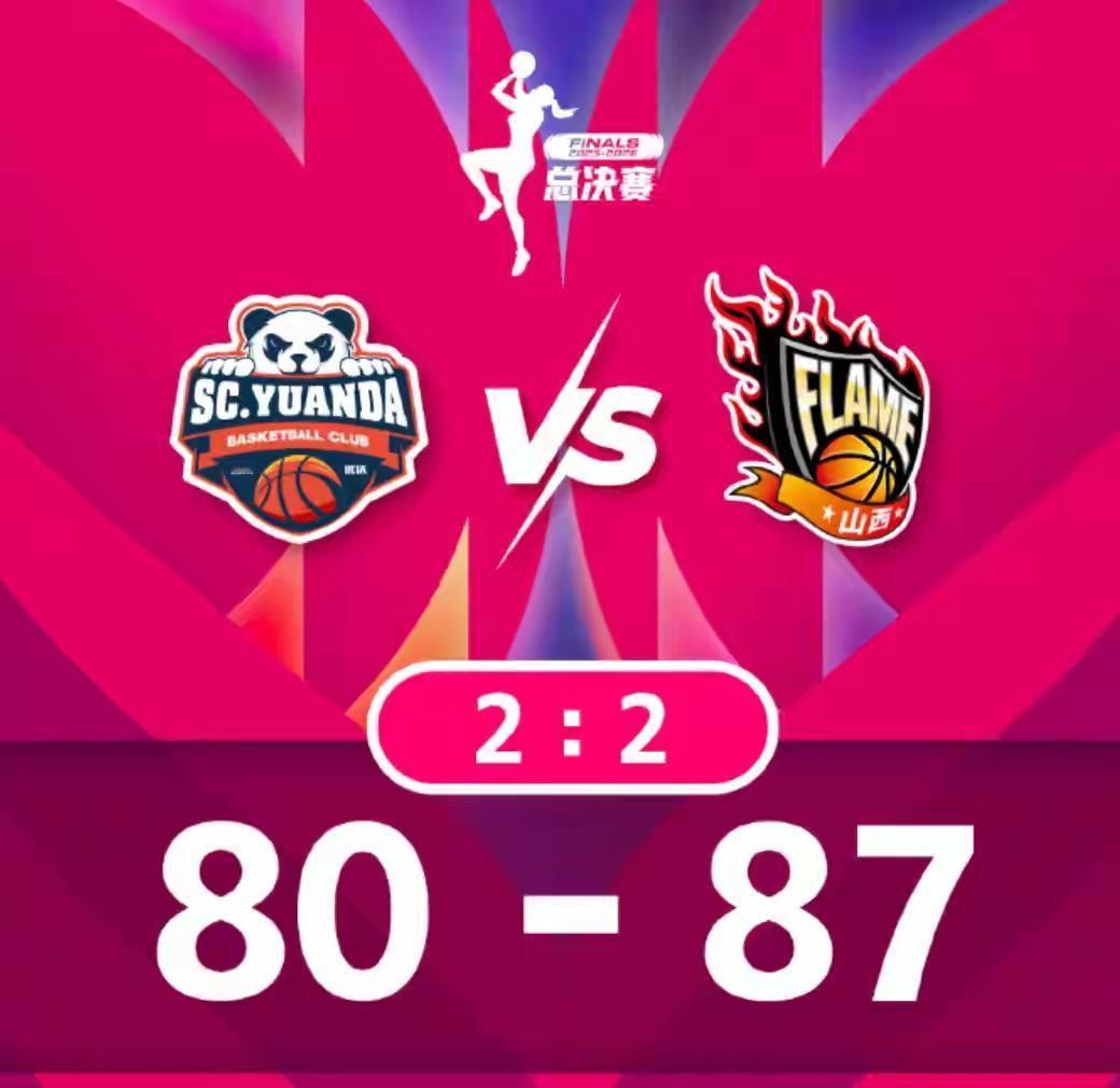 WCBA总决赛第四场,四川蜀道远达以80:87负于客队山西竹叶青,双方大比分战成2:2,山西这场胜利,不是最后绝杀取胜,而是主导全场的一场胜利。