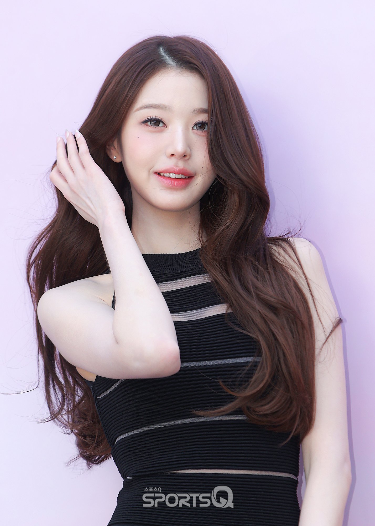美丽元英登场,身穿优雅黑色小礼裙搭配粉色玫瑰花修饰的黑色高跟鞋,长卷发柔顺飘逸,青春靓丽🌸
