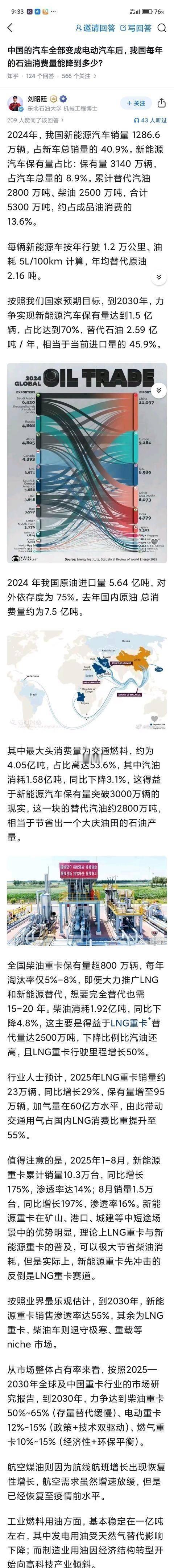 中国的汽车全部变成 电动汽车 后,我国每年的石油消费量能降到多少?2024年中国