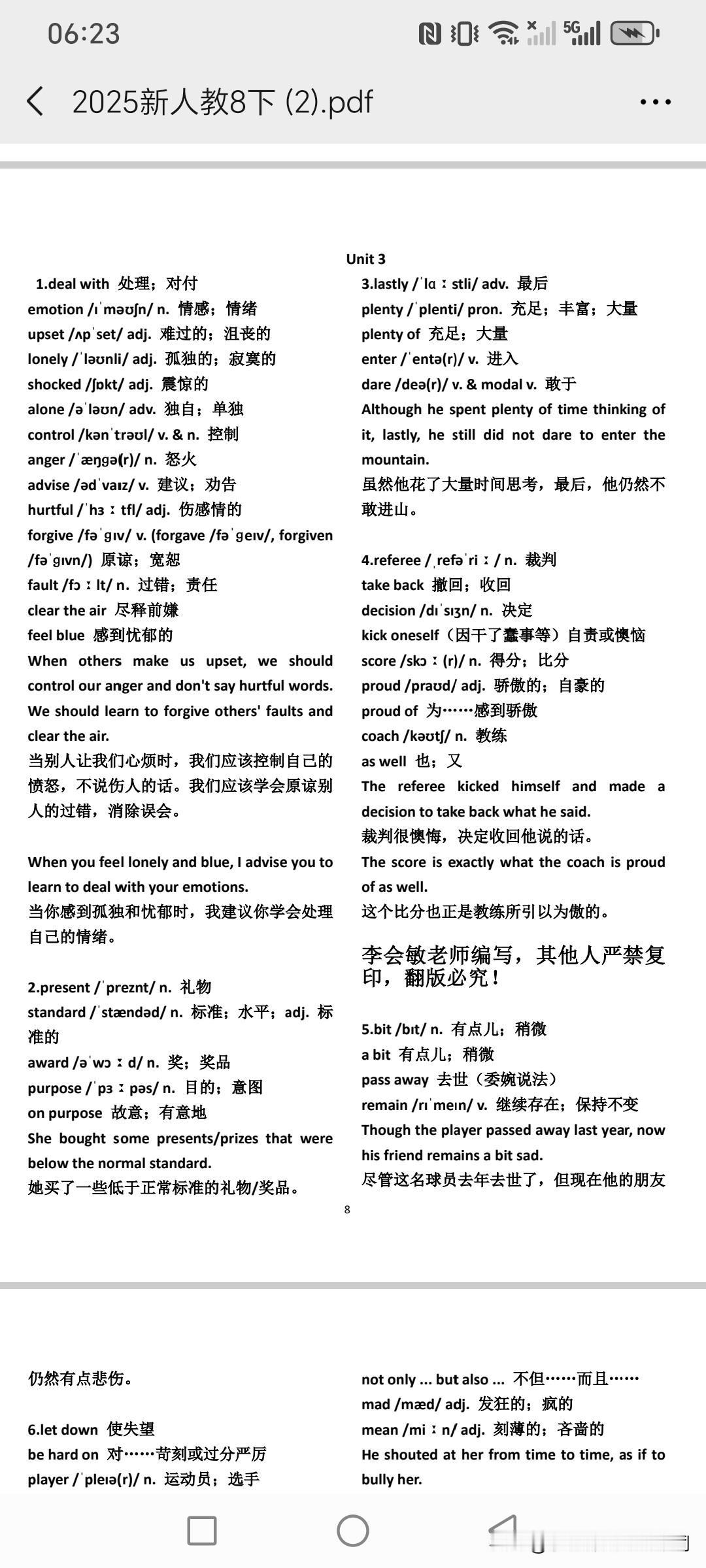 我把每单元单词编写成3到5个句子,或者是5到8个句子,在语境当中背单词,真正大幅度提高记忆效率,让学生彻底摆脱单一背单词。