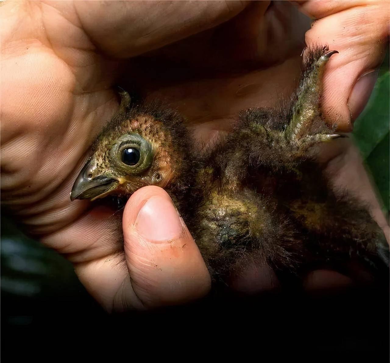 鸟类中也有长着4只爪子的。麝雉是现存最怪异、最原始、最特化的鸟类之一。 麝雉幼鸟