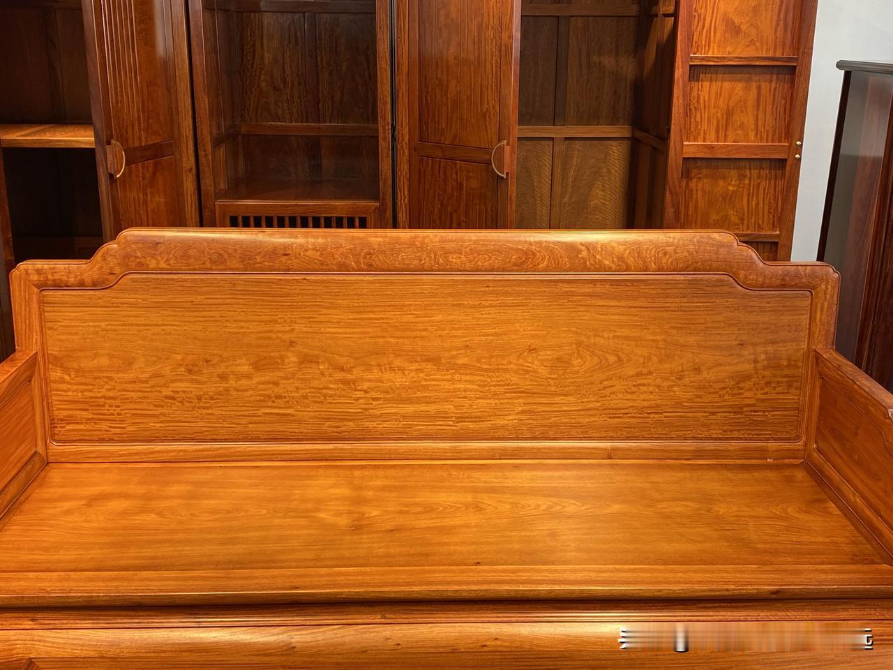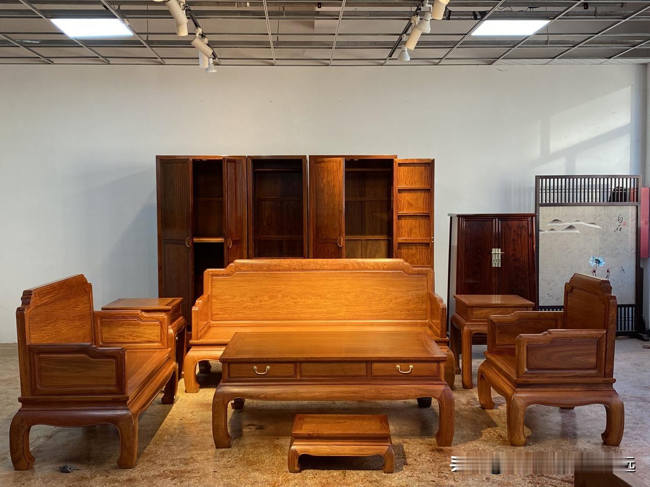 材质是缅甸花梨木(大果紫檀),用的全缅甸老料,请允许我吹个牛,效果太好了[呲牙]这么大件能做到这么均匀,属实不容易呀,腿足无芯13公分,无缝内圆角工艺,全材二膘料,无拼补无瑕疵,用料与做工,咱自认为是很不错了,全部散件磨光后组装,表里如一,兄弟们可以点评一番,这批是6套123七件套,有正需要的朋友也可以点点关注哈[握手]