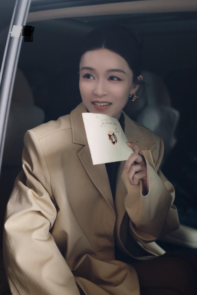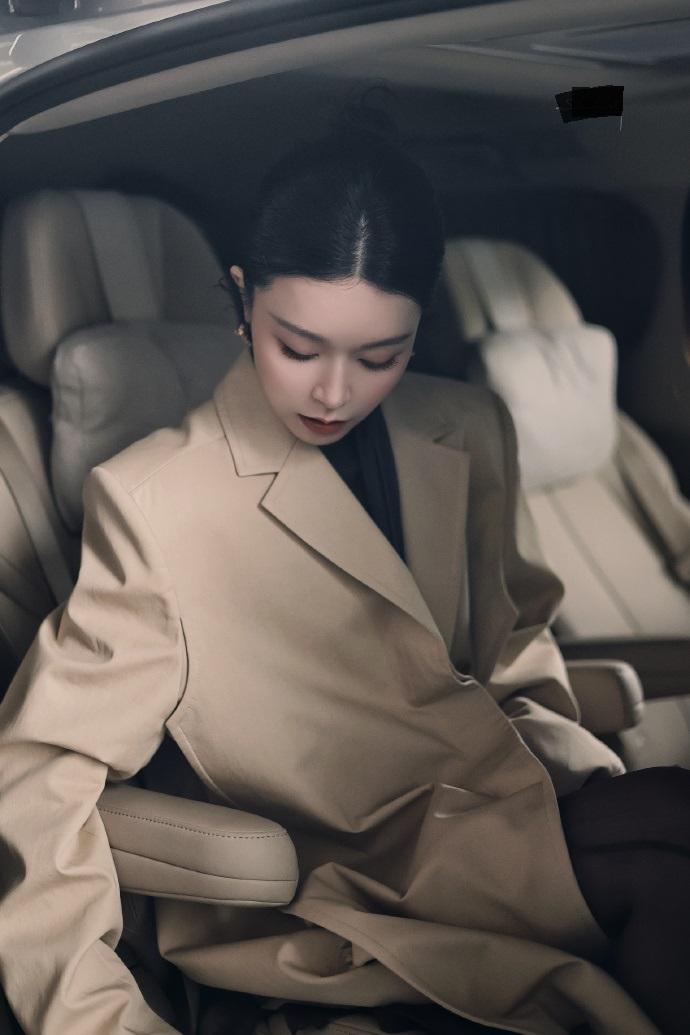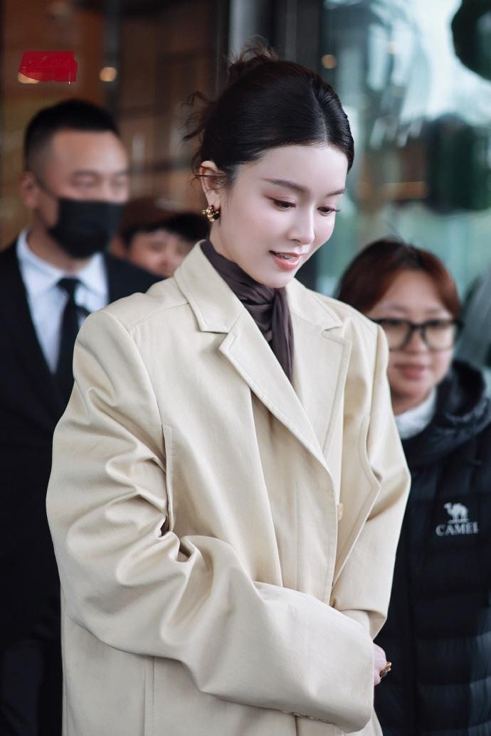 文咏珊里面穿黑色打底衫,下身穿黑色裤子,外面套着一件米色的大衣,看起来有种风度翩翩的感觉。