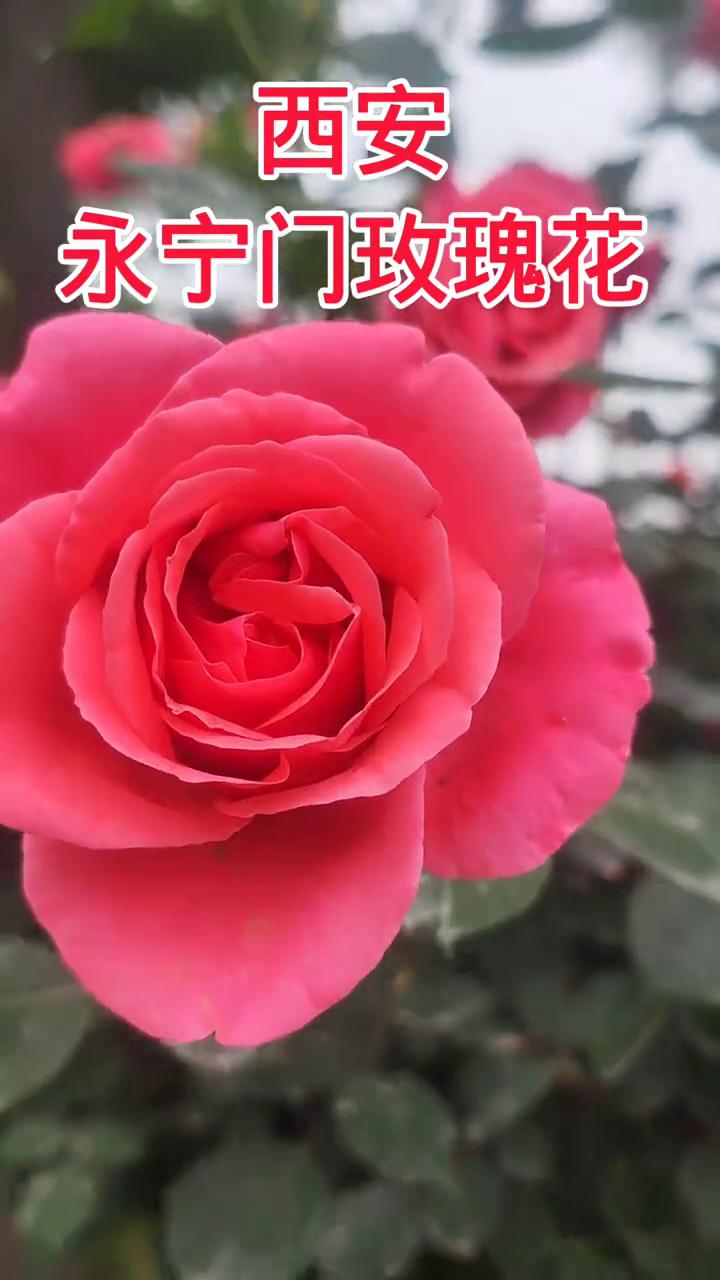 西安永宁门玫瑰花。 西安的永宁门,西安的玫瑰花。看这玫瑰花长得太漂亮了,玫瑰花,这边还有玫瑰花。而且这个玫瑰花就是在西安的永宁门城墙里头就可以观赏了,开的也是非常鲜艳的。这边是粉的,这边是鲜红色的玫瑰花,后面就是书院门了。看到了吧?书院门。
