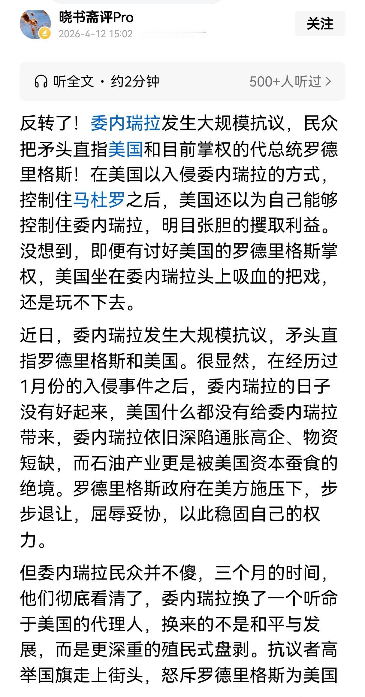​在马杜罗的统治之下,美国背后煽风点火,意图彻底动摇马杜罗的执政根基,为自己的侵略行径作合理化的包装。但事实证明,美军绝对不是神兵天降的救星,如今委内瑞拉陷入到了更大的绝望之中。美国的所谓“民主重建”,“经济援助”全是骗局,而换来的只有赤裸裸的对委内瑞拉国家财富的掠夺,民生状况持续恶化。很显然,委内瑞拉国内爆发的的抗议,这是美国形象的彻底破产,也是美国殖民代理统治委内瑞拉模式的破产。