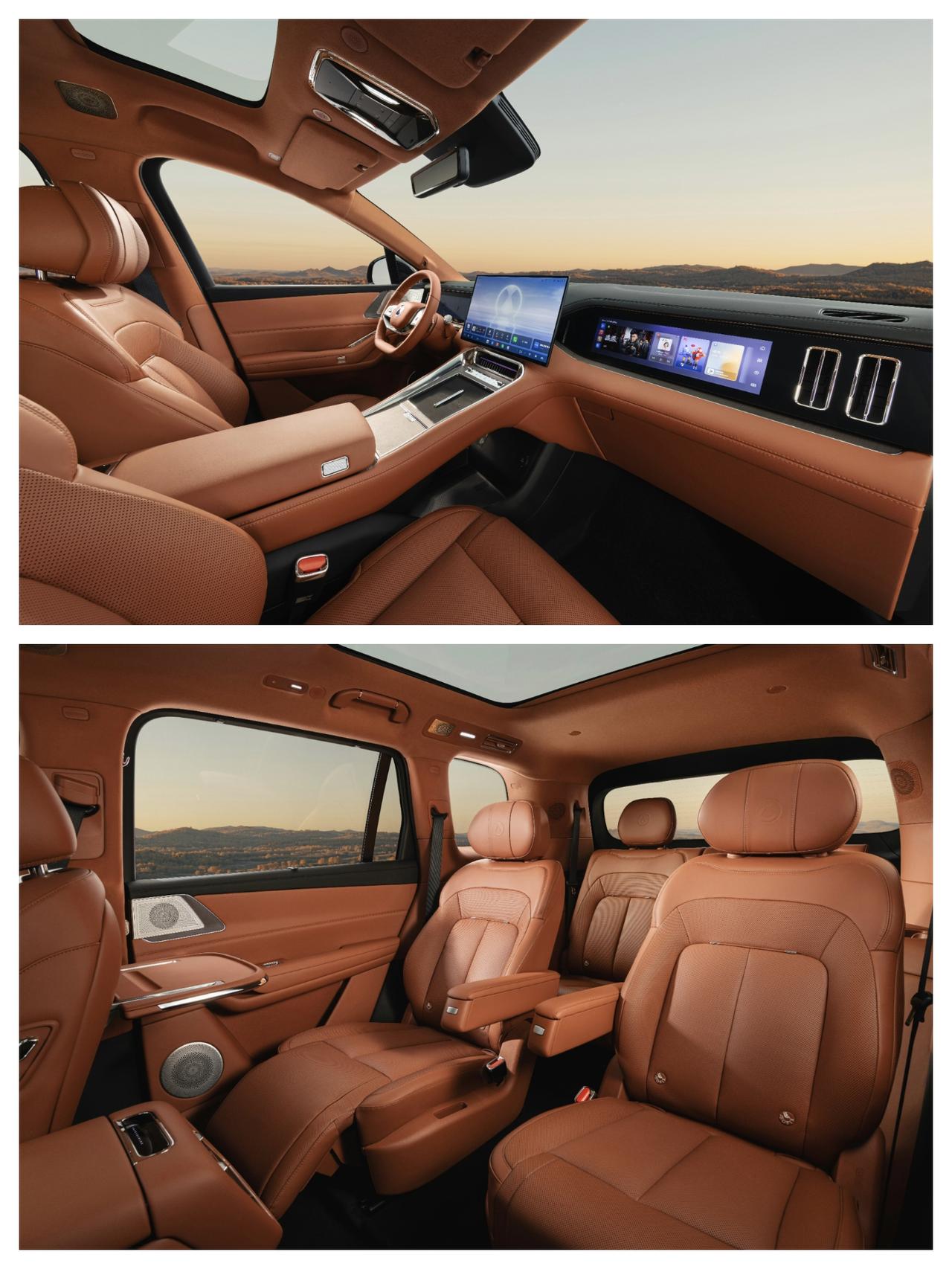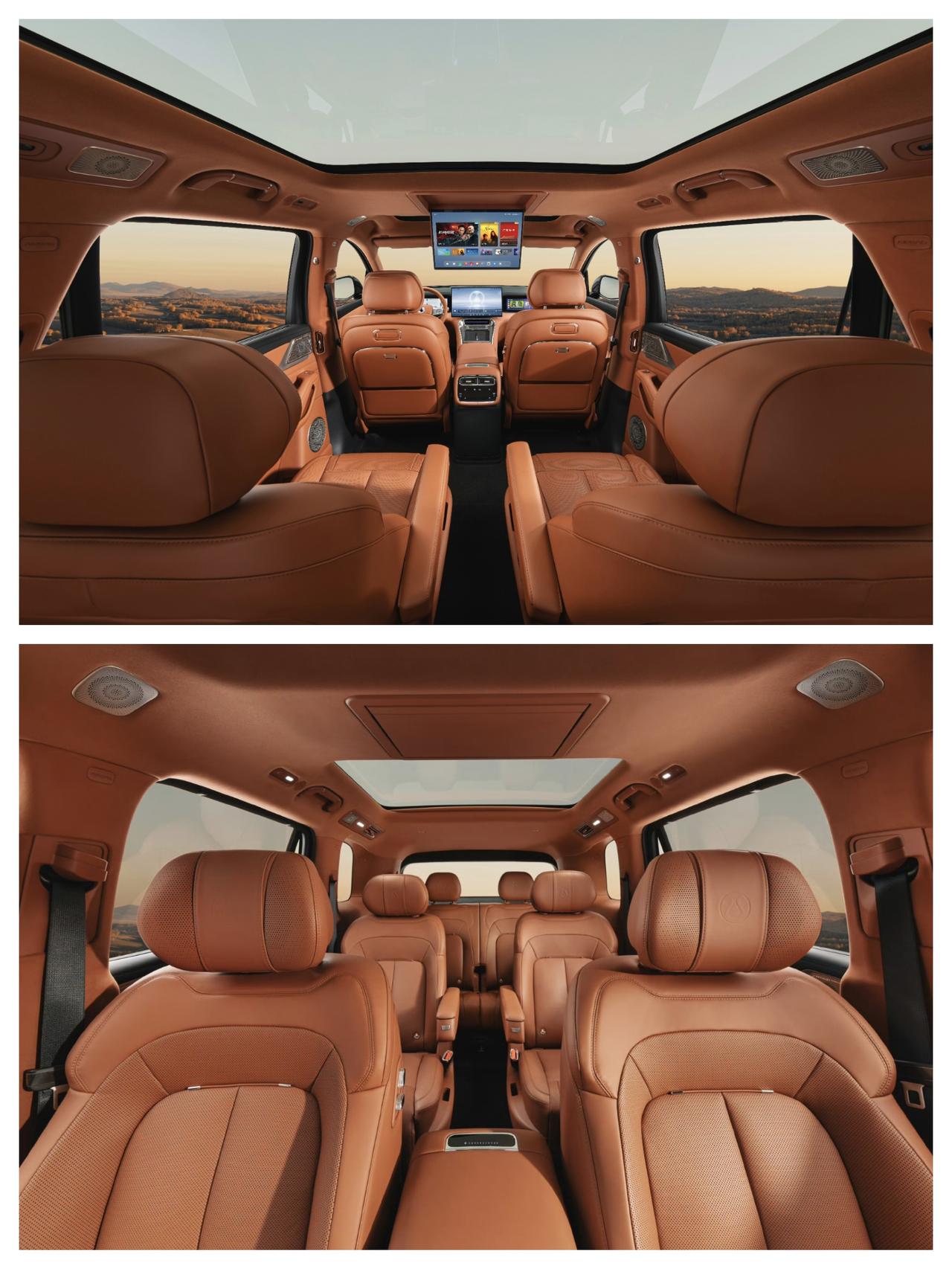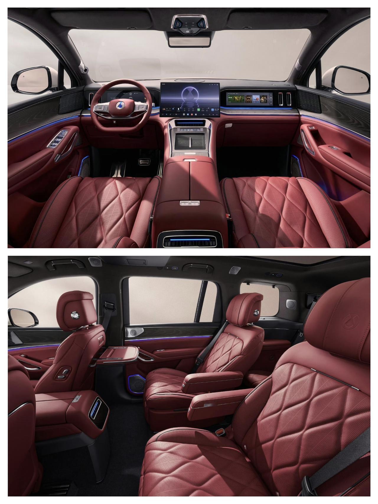 腾势N8L闪充版内饰,整体更偏向于家用风格,基本配置全部拉满。这个没啥好说的,豪华感和用料都很好。