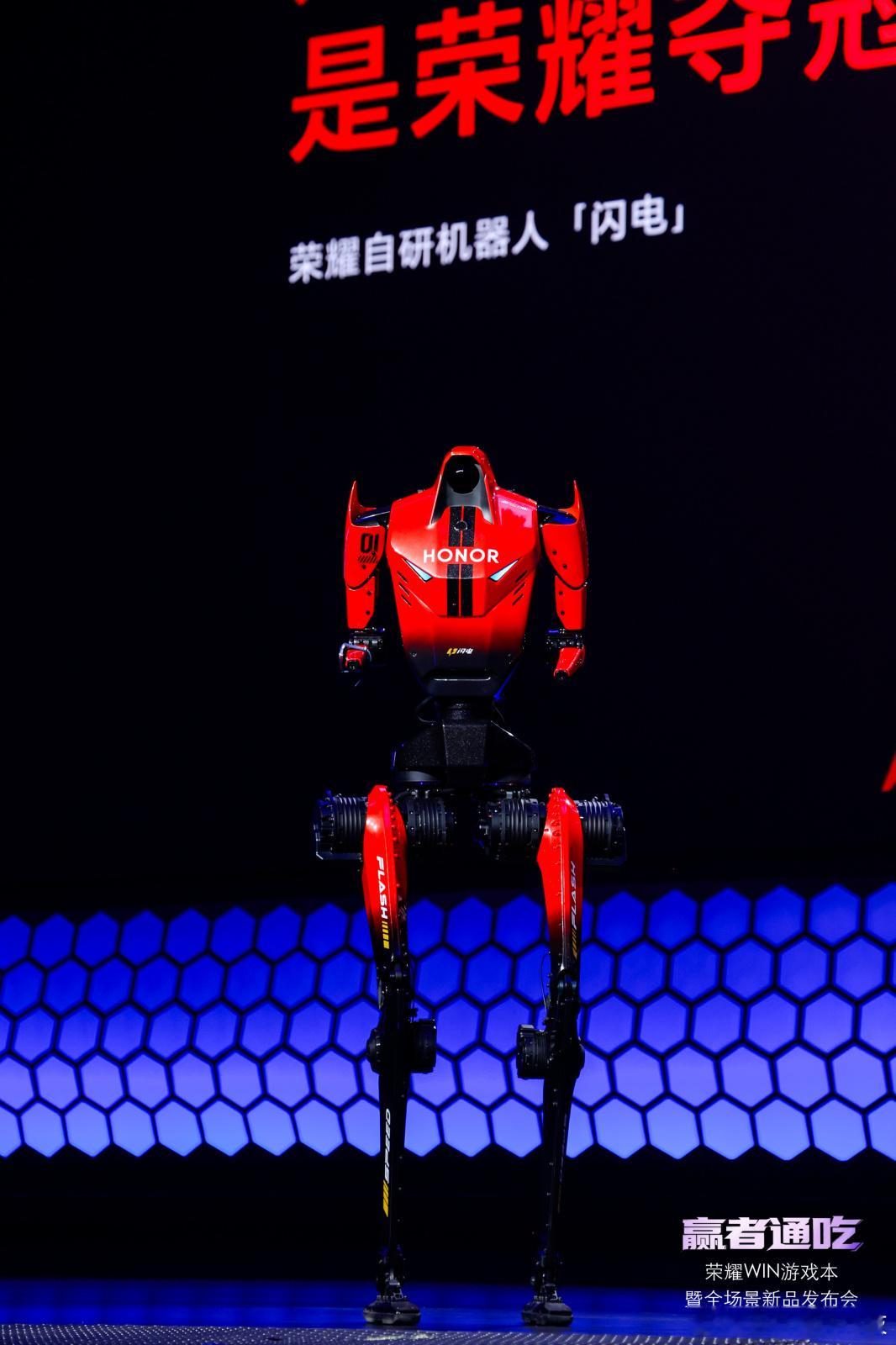 荣耀笔记本发布会张雪机车荣耀机器人 均来到了现场,而且一身红色外衣,机车红色,闪电机器人红色。这画面感,荣耀红的大红大紫呀。