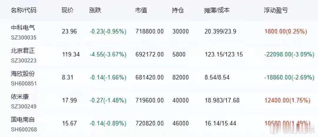 持仓策略:中科电气300035,锂电池,依托20日线持仓。北京君正300223,存储芯片,依托20日线持仓。海欣股份600851,创新药,依托20日线持仓。依米康300249,液冷,依托20日线持仓。国电南自600268,能源设备,依托20日线持仓。(实际仓位高低,代表旌扬对近期市场的态度。持仓股遇大涨且不封板,且明显偏离5日线,可考虑减仓或止盈。)股票a股股市分析